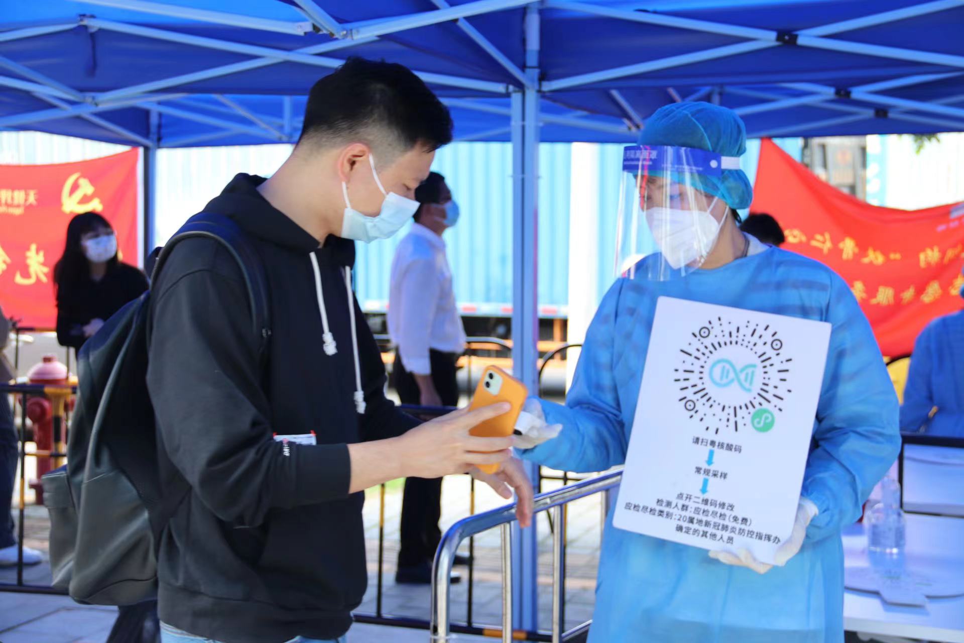 「之前一直在居住的小區做義工,在核酸檢測點做義工還是第一次,能為居民提供力所能及的服務,我覺得非常有意義。」在坪山創新廣場核酸檢測點,根之然生物科技有限公司創始人、香港青年趙曼弛一絲不苟的做好掃碼、測溫工作。