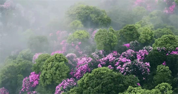 春日的深圳梧桐山繁花似錦,浪漫叢生,每年花開正艷時天都會成為深港市民的賞花首選地。近日,「春到梧桐、煥新羅湖」2022梧桐山第七屆毛棉杜鵑花會在雲端開幕,本屆花會將持續至4月13日。