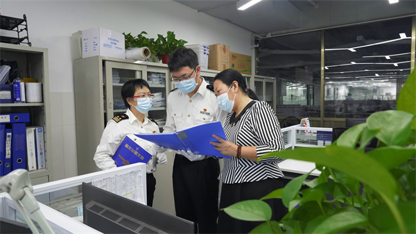 廣州海關所屬番禺海關關員深入企業了解進出口訂單情況並講解AEO認證政策(攝影:董建華)
