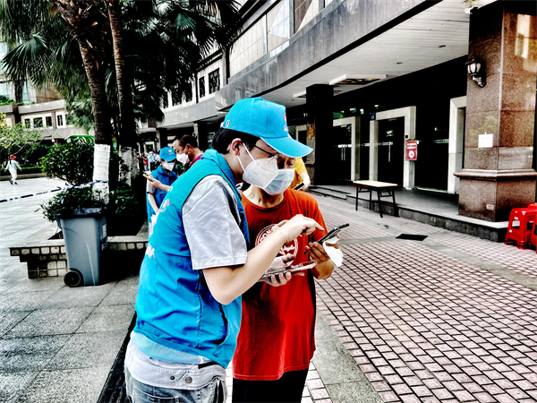 全市大規模核酸檢測工作急需大量志願者參與,4月10日中午12時,廣州地鐵建設公司用地管理部的關逸在工作群內看到了志願者徵集的通知,還在外未來得及用午餐的她馬上安頓好家人,於12時30分前趕到社區,參與社區組織開展的全員核酸檢測任務。