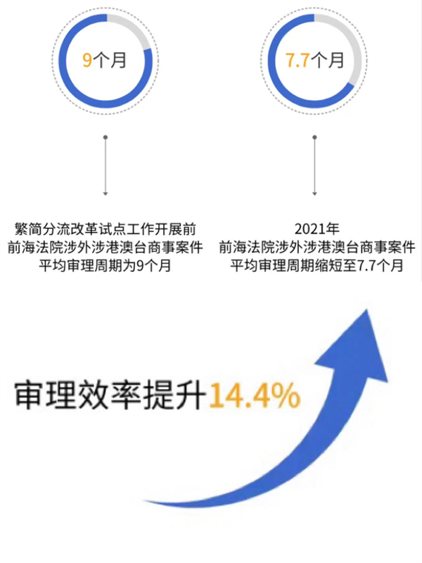 深圳前海合作區人民法院立足集中管轄深圳市第一審涉外涉港澳台商事案件工作實際,積極推動民事訴訟程序繁簡分流改革試點工作,探索在符合條件的涉外涉港澳台商事案件中適用普通程序獨任審理,有序銜接新修訂的《民事訴訟法》,科學精準配置審判資源,提升涉外涉港澳台商事案件審判效率。
