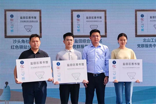 鹽田區公共圖書館事業高質量發展的秘訣之一廣泛尋求跨界融合。4月23日當天,鹽田區又誕生了3家社會合作分館:沙頭角社區紅色驛站分館、鹽田綜合保稅區黨群服務中心分館、北山工業區黨群服務中心分館。與此同時,第二批「紅色家庭書屋」名單也首次公布,以點帶面,帶動更多的人加入了讀書人的行列。下一步,鹽田區將繼續按照「應融盡融,能融則融」的發展理念,將圖書館的功能植入到校園、企業、社區、公園、城市驛站等各類功能區域,打通公共文化服務「最後一公里」。