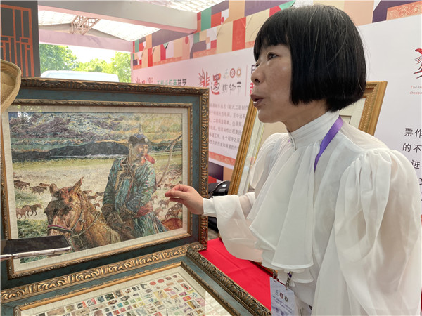 非遺展演——郵票拼貼畫。(宋璟 攝)