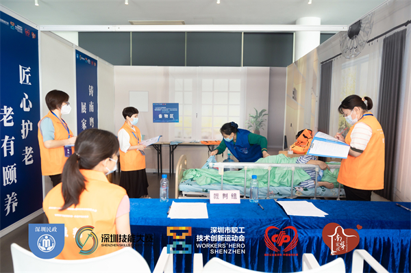 深圳養老護理能手,齊聚一堂同台競技。6月12日,由深圳市民政局、深圳市人力資源和社會保障局、深圳市總工會聯合主辦的「深圳市第十二屆職工技術創新運動會暨2022年深圳技能大賽-養老護理員職業技能競賽」決賽在深圳人才公園求賢閣舉行,55名養老護理員同場競技。
