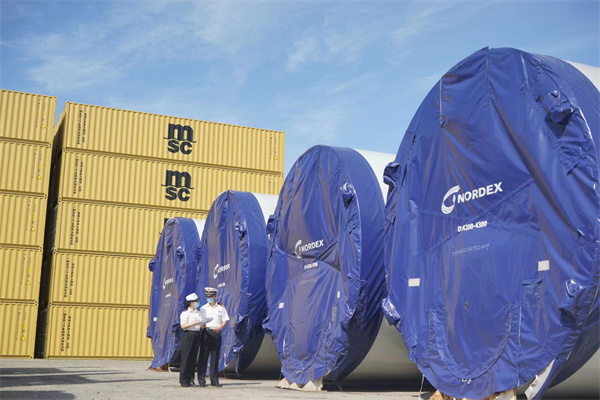 頂圖:太倉海關關員對出口新能源風葉進行監管。(楊澤浩攝)