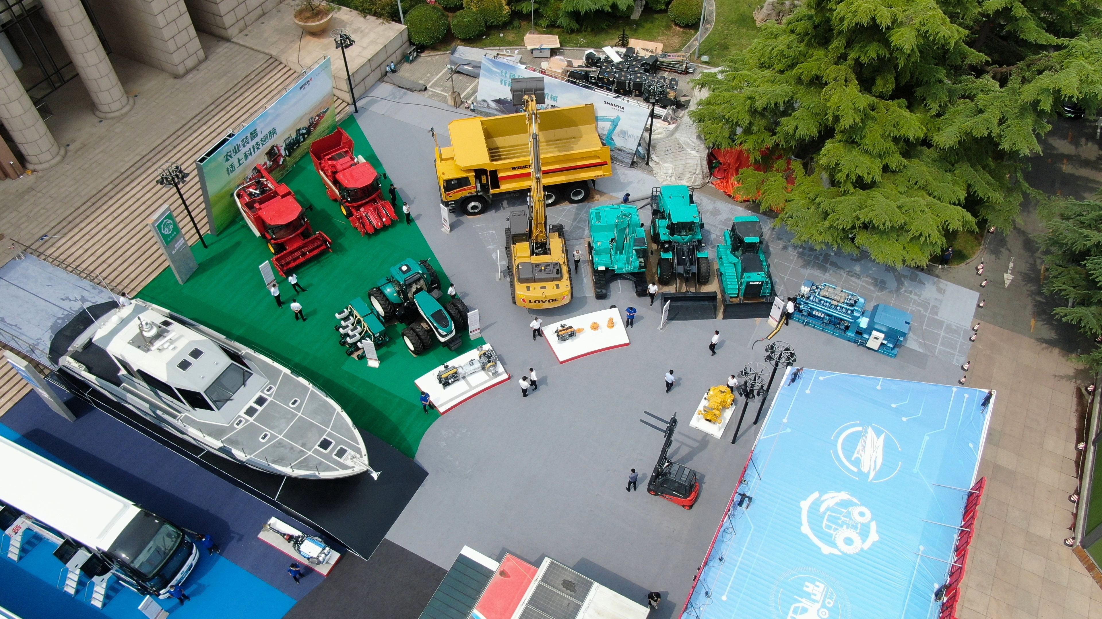 記者在現場看到,榮獲國家科技進步一等獎的WP13H商用車動力總成,全球獨家的51.09%高熱效率發動機,風阻系數全球最低的中國重汽「黃河」重卡,中國首台擁有自主知識產權的「黃河」氫燃料電池雪蠟車,配套濰柴大馬力CVT動力總成的雷沃P8000重型智能拖拉機,以及法拉帝FSD195公務艇、林德氫燃料電池叉車等,在烈日下詮釋著工業製造的魅力。