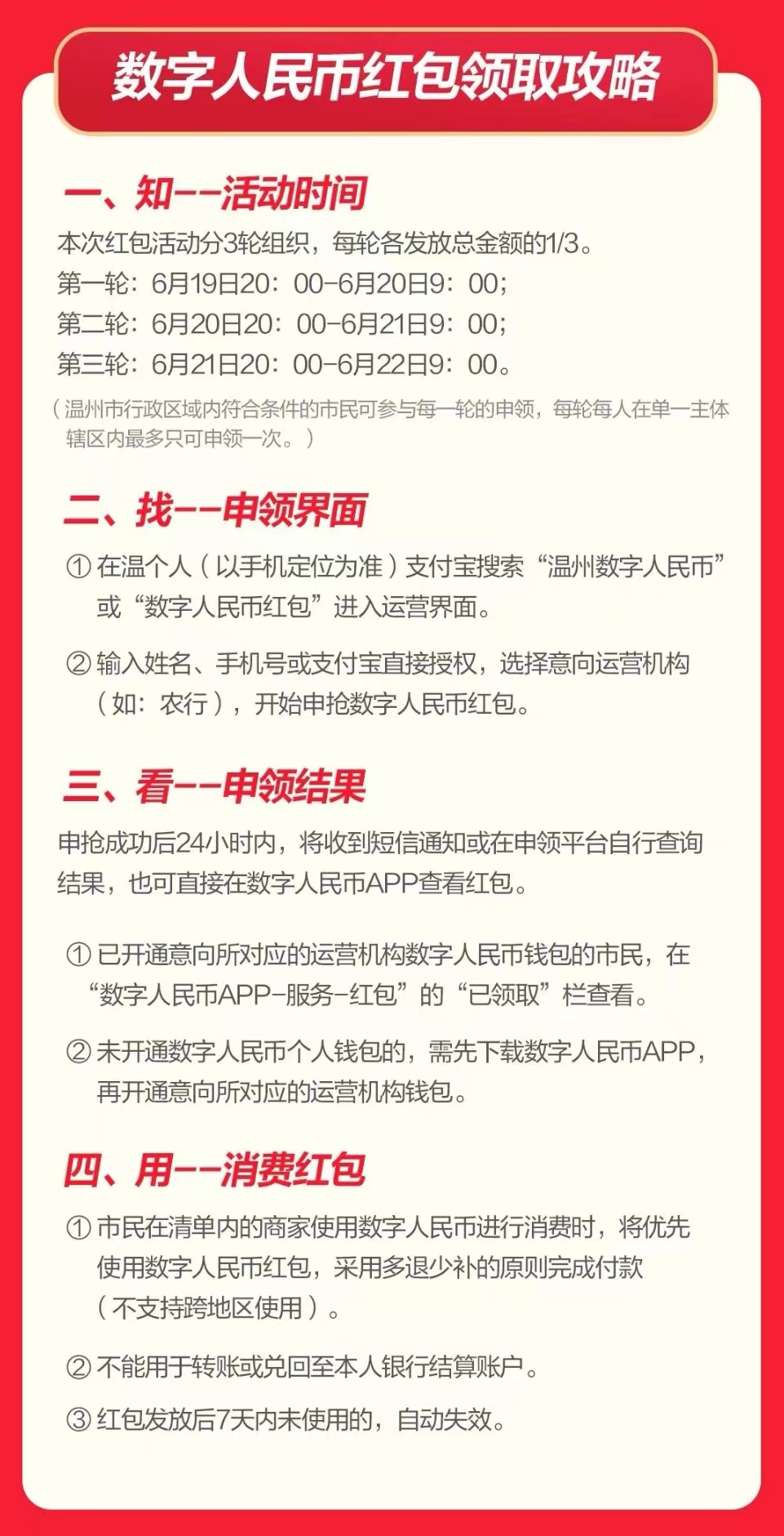 溫州市發放20萬個數字人民幣紅包,6月19日開搶