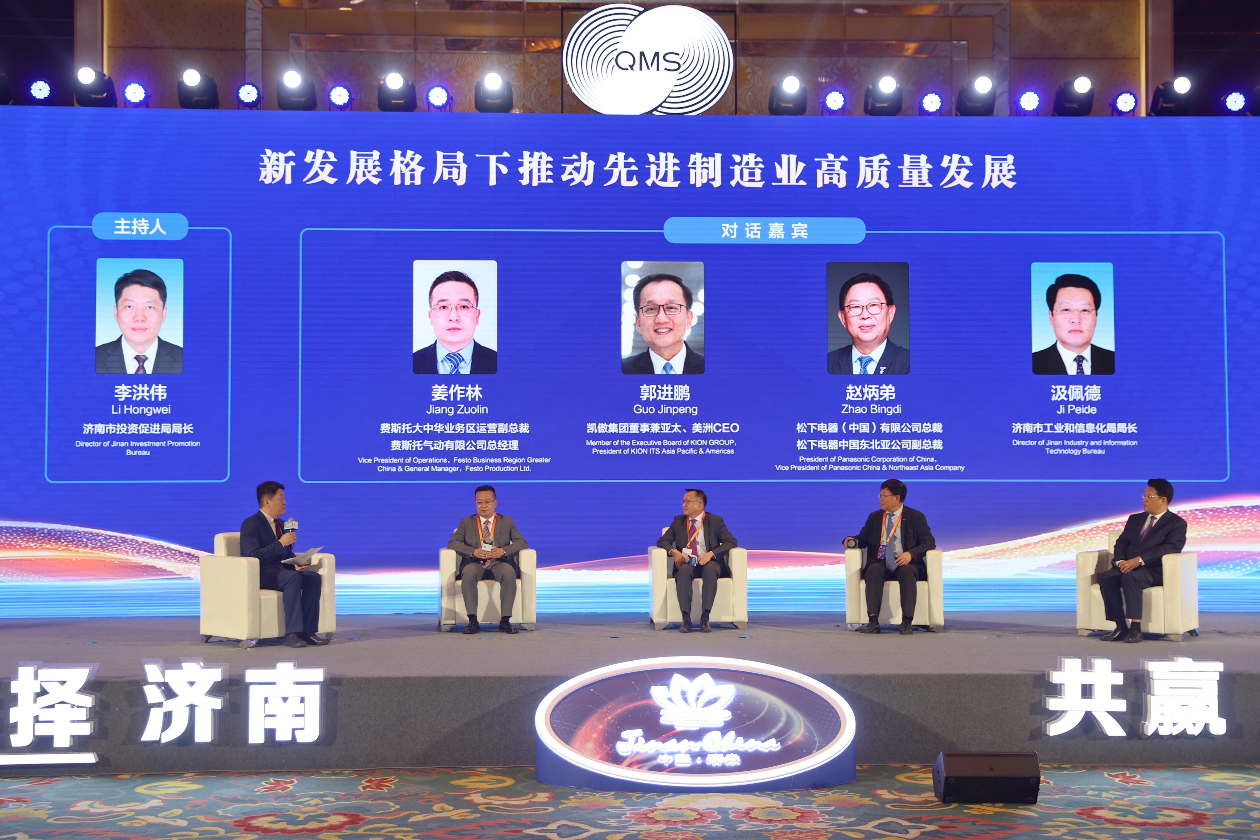 在對話交流階段,費斯託大中華業務區運營副總裁姜作林,凱傲集團董事兼亞太、美洲CEO郭進鵬,松下電器中國東北亞公司副總裁趙炳弟,濟南市工業和信息化局局長汲佩德、濟南市投資促進局局長李洪偉等,圍繞「新發展格局下推動先進製造業高質量發展」展開了對話交流。