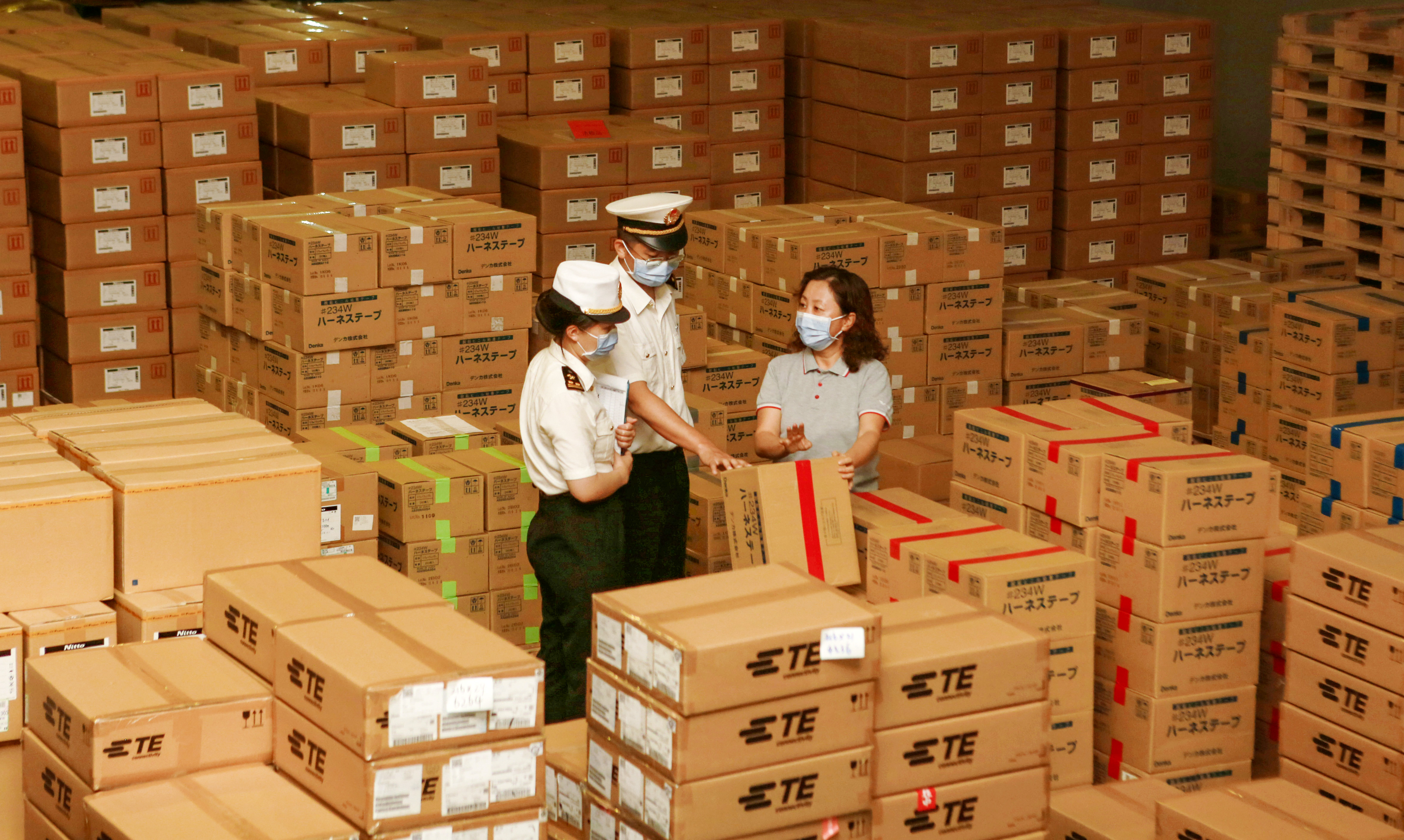 頂圖:深圳海關關員在「出口監管倉「進行實地巡查。