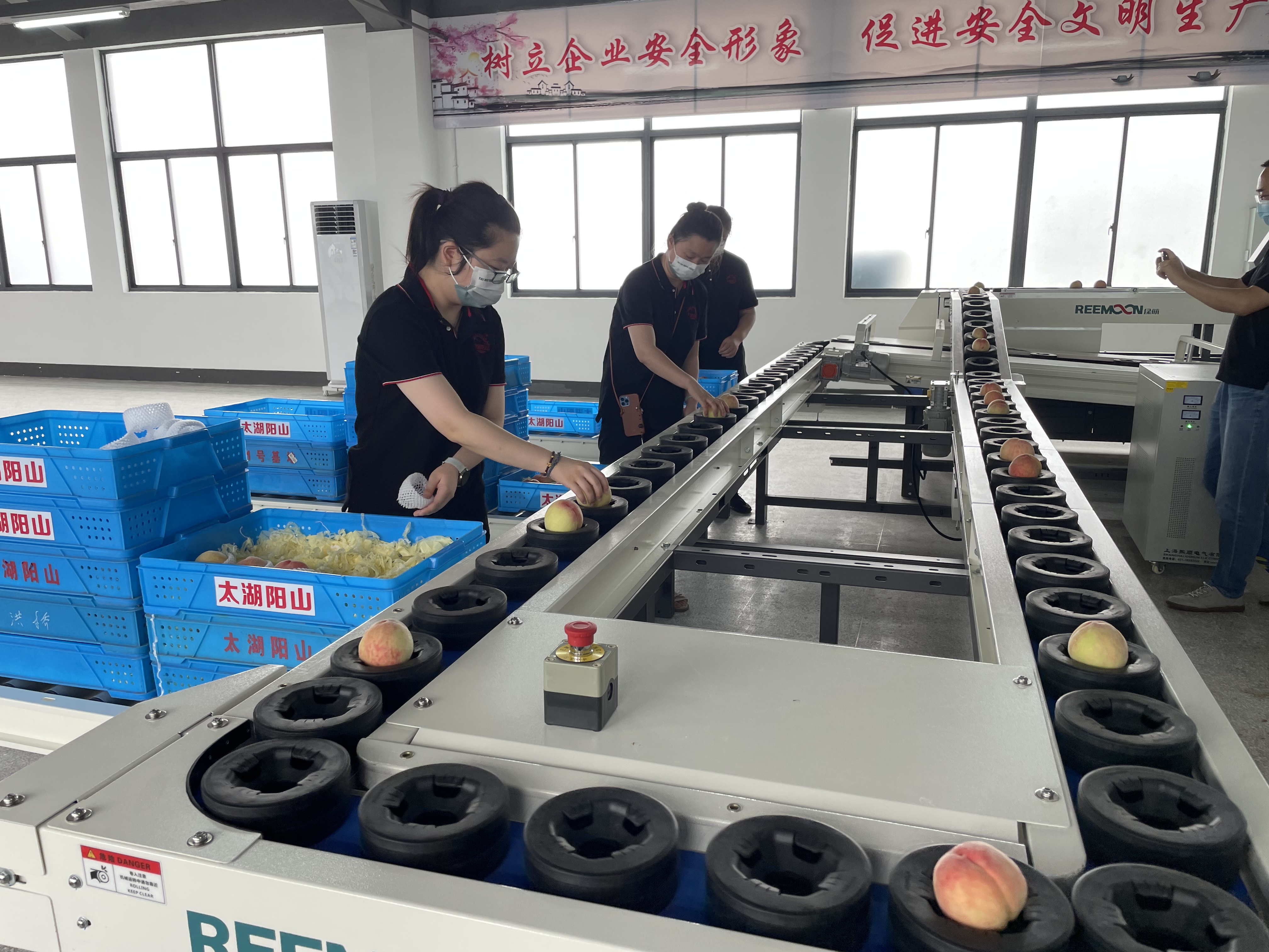 時值初夏,無錫市陽山鎮的果園內雨花露、朝陽、京紅、日川等早桃品種相繼成熟,為期近3個月的蜜桃季拉開帷幕。在陽山鎮集體企業——無錫太湖陽山水蜜桃科技有限公司內,專門針對果皮脆弱性水果研發的智能高端水蜜桃分揀設備——呵福式分選機正在高速運轉。不同重量、甜度的水蜜桃經過分揀進入不同包裝流程。據介紹,分揀機利用3D視覺識別技術和無損檢測技術,可以依據水蜜桃的大小、重量、園整度、糖度等將水蜜桃劃分為12個不同等級,每分鐘檢測量183隻,在提升了30%的效率同時,進一步提升了對水蜜桃的品質監控能力。