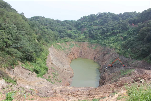 牛首山西峰山體經過兩次破壞性開採,一度留下一個60多米深的礦坑。(江寧區委宣傳部供圖)