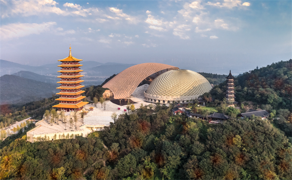 廢棄礦坑變為文化旅遊區,牛首山佛頂宮成為中國建設工程魯班獎和中國土木工程詹天佑獎「雙獎」工程。(江寧區委宣傳部供圖)