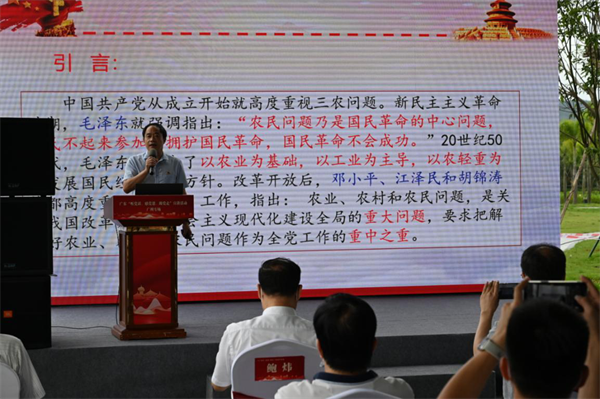 20日,由廣東省委宣傳部、省文明辦、省委農辦、省農業農村廳主辦,廣州市委宣傳部、廣東廣播電視台珠江頻道承辦,花都區委宣傳部、花都區赤坭鎮委員會協辦的廣東「聽黨話、感黨恩、跟黨走」宣講活動廣州專場在赤坭鎮竹洞村舉行。華南農業大學馬克思主義學院副院長徐大兵娓娓道來,講述《習近平總書記的「三農」情懷》,四位紮根鄉村振興一線的基層黨員用質樸的語言、鮮活的事例,為大家講述他們紮根農村廣闊天地、大施所能的精彩故事。