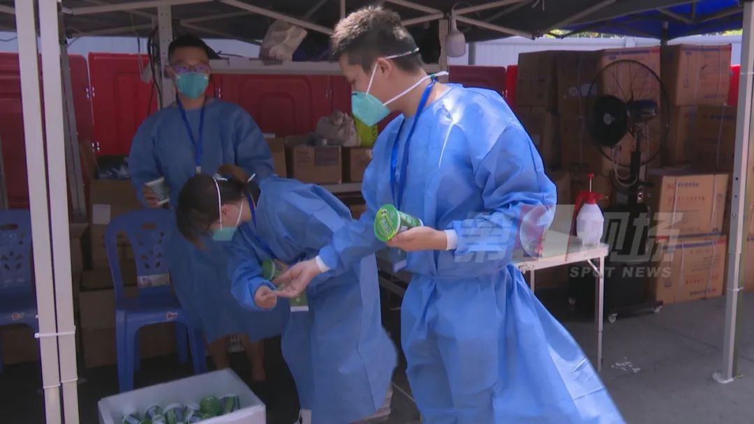 據沙河街道黨政綜合辦公室工作人員王祖昕介紹:「我們現在參與防疫工作的人員近3000名,每天消耗各類飲品,共計是800多箱,2萬多瓶。我們通過補充飲品給工作人員,讓他們及時消暑解渴。我們也會根據需求,通過不同的組別給他們各方的工作人員配送,補充他們身體所需的微量元素,避免中暑。」