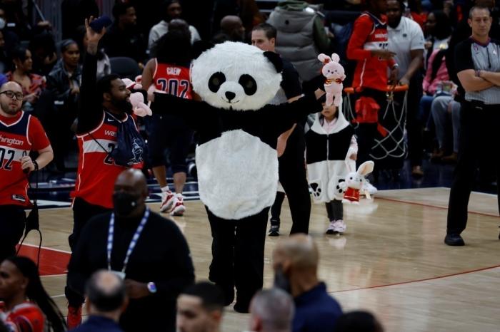 暫停時段,現場工作人員還向觀眾投擲具有中國特色的生肖兔,引發一陣「哄搶」。比賽間歇,由駐美使館外交官子弟扮演的熊貓吉祥物登台亮相,其憨態可掬的模樣、惟妙惟肖的動作贏得觀眾陣陣掌聲和歡呼聲,華盛頓華人華僑社團也奉獻了精彩的中國文藝表演。現場觀眾沉浸在濃濃的中國年味之中,度過了一個愉快的「中國文化之夜」。
