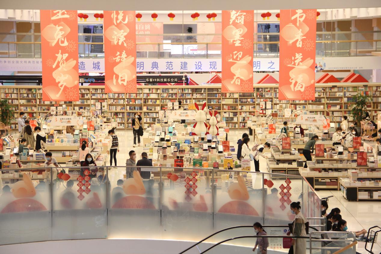 深圳中心書城,不少遊客選擇在書香中感受鵬城文化年味。(深圳特區報記者 焦子宇 攝)
