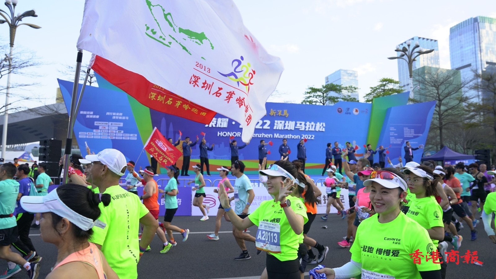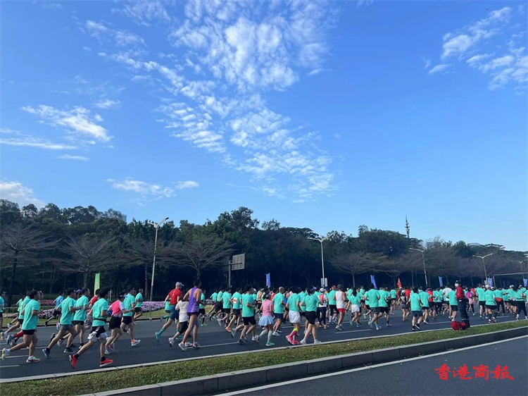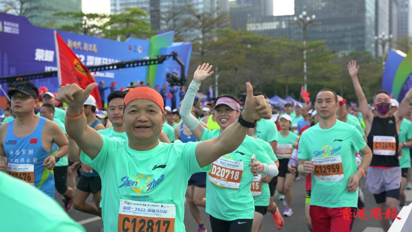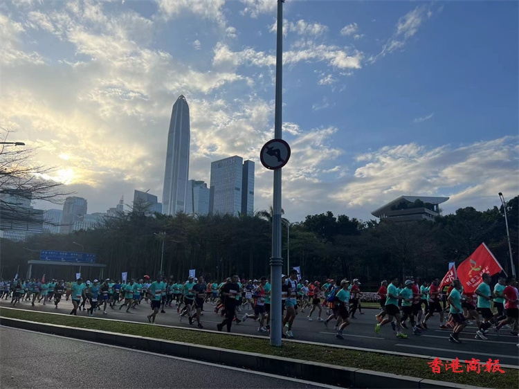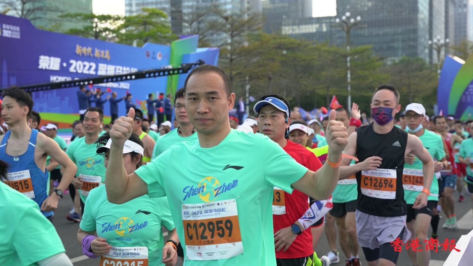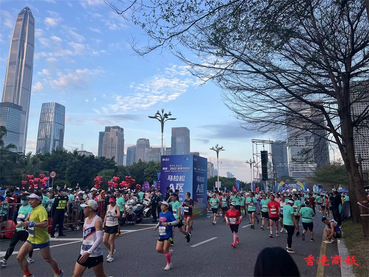2022深圳馬拉松在深圳市民中心廣場開賽,20000名參賽選手陸續抵達出發點開跑。