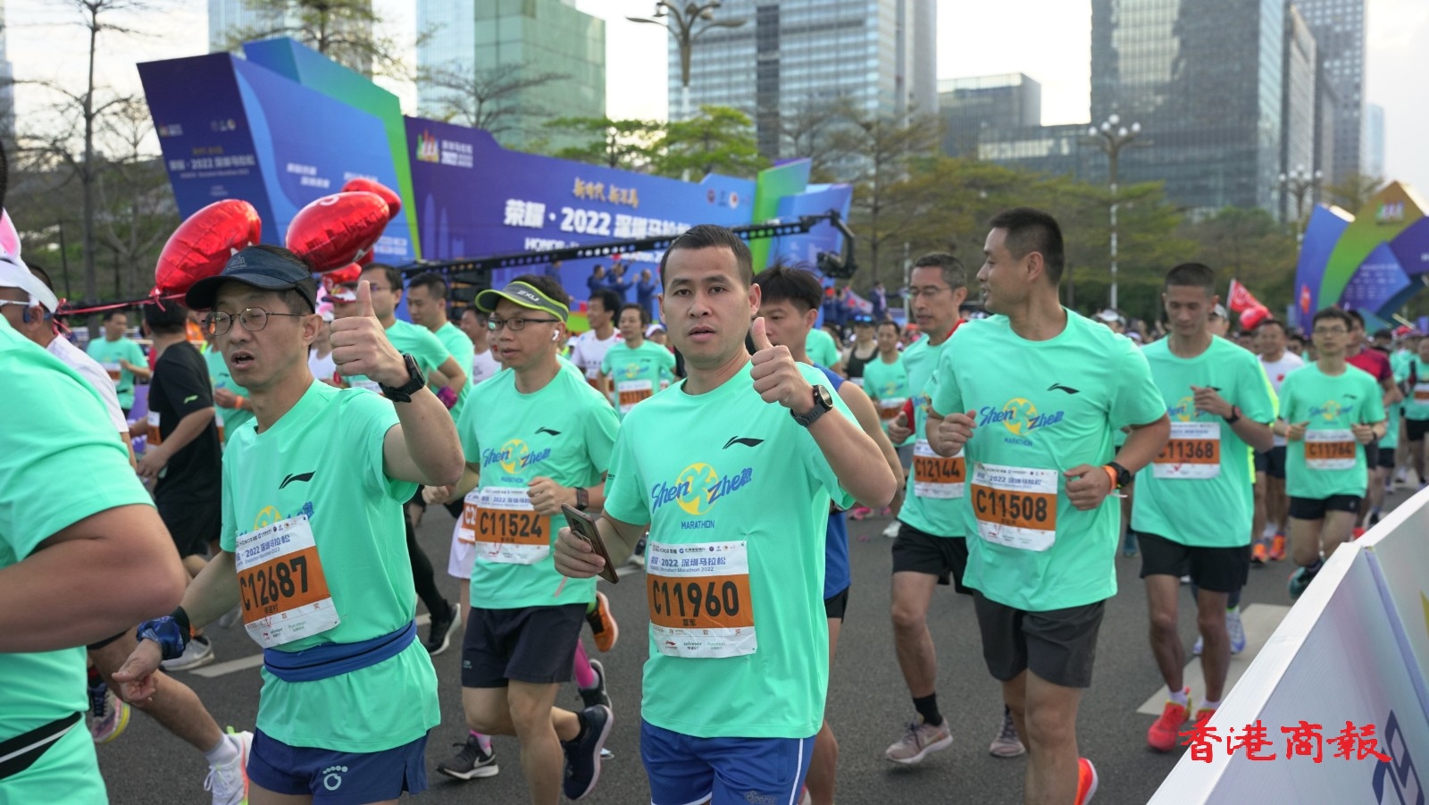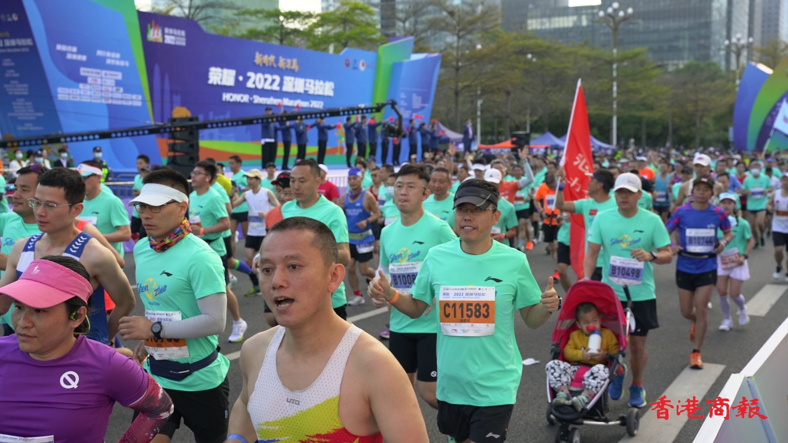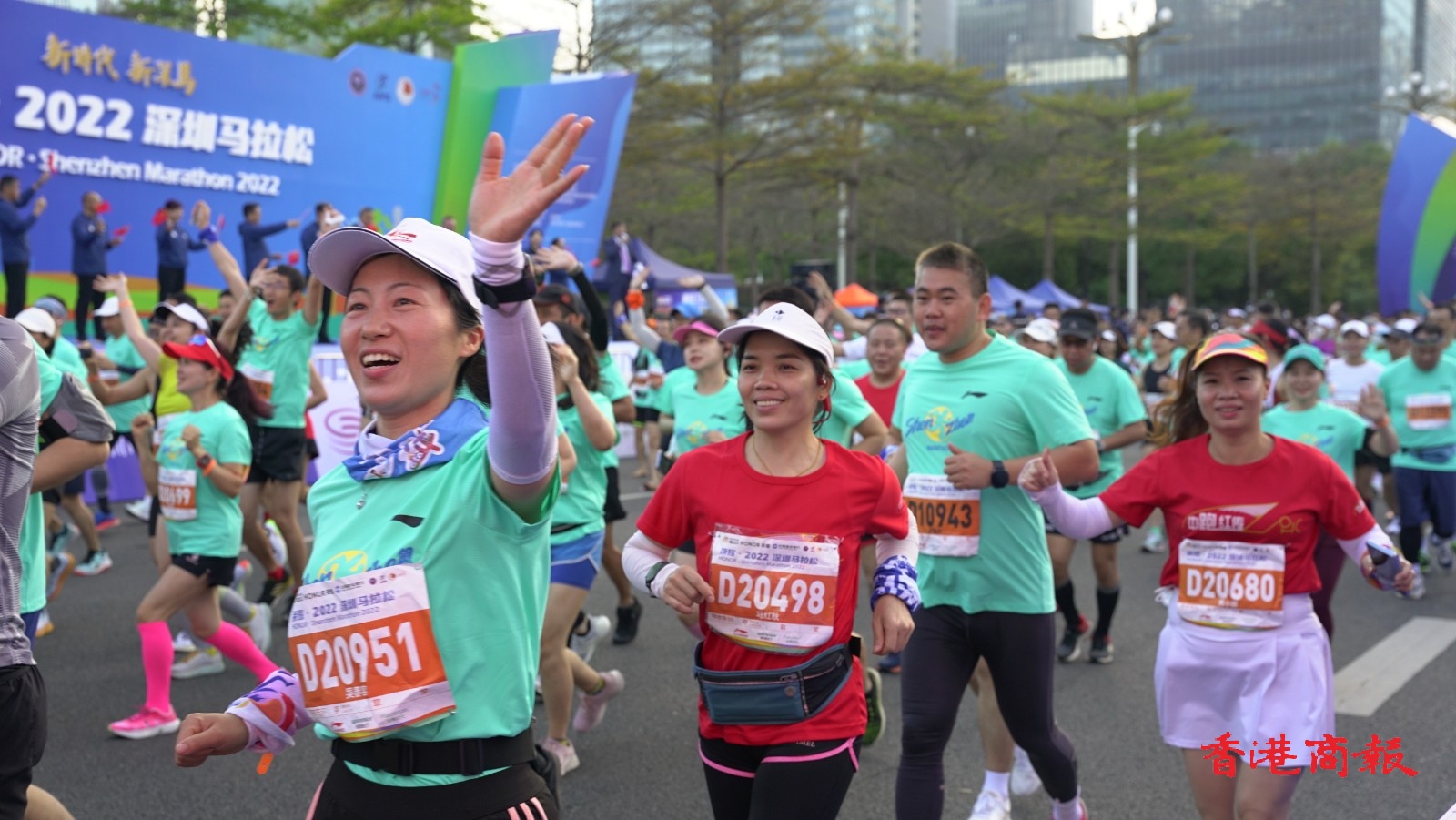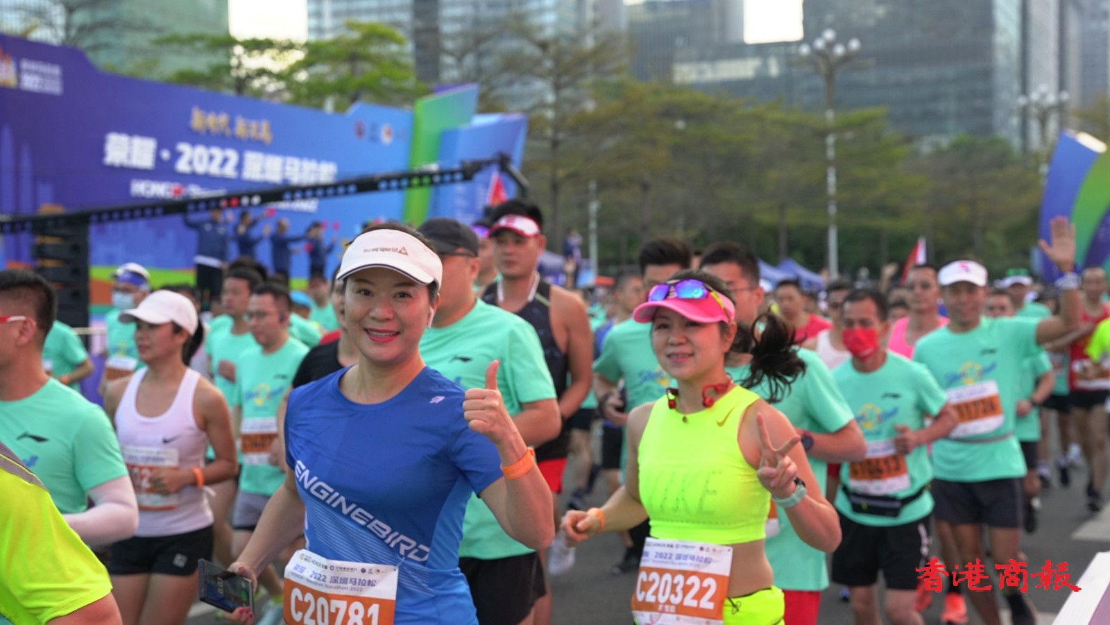 2022深圳馬拉松在深圳市民中心廣場開賽,20000名參賽選手陸續抵達出發點開跑。