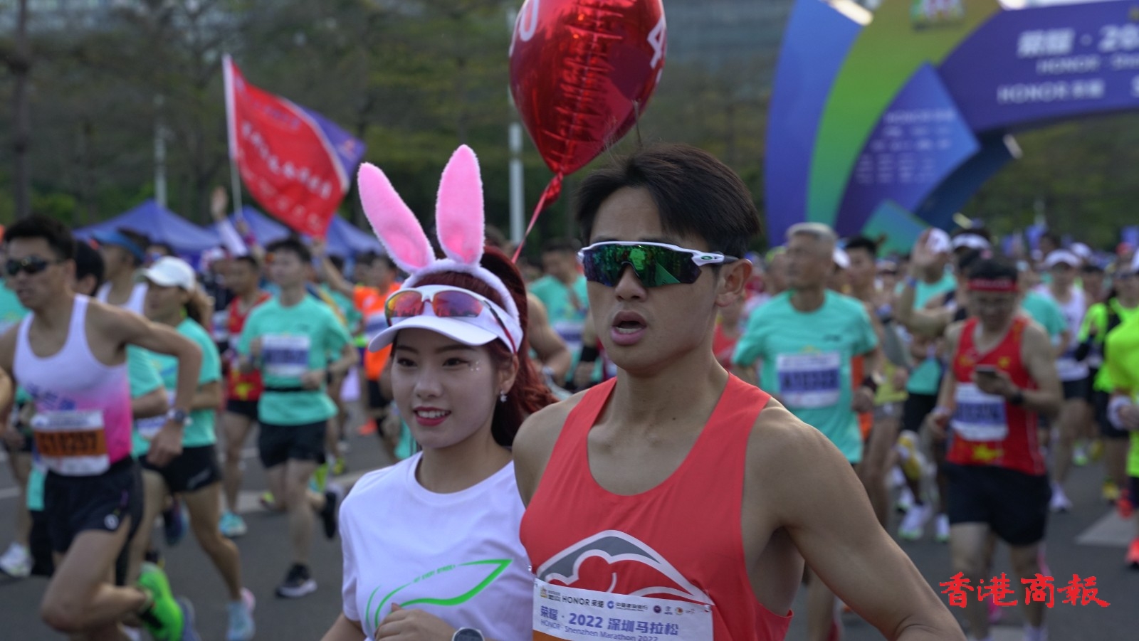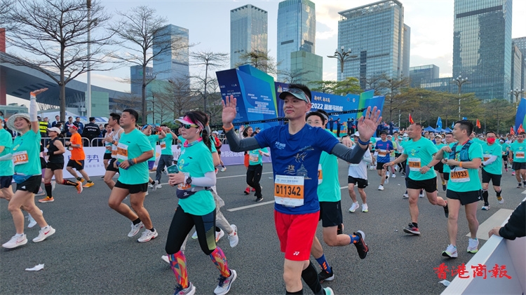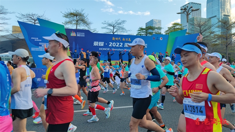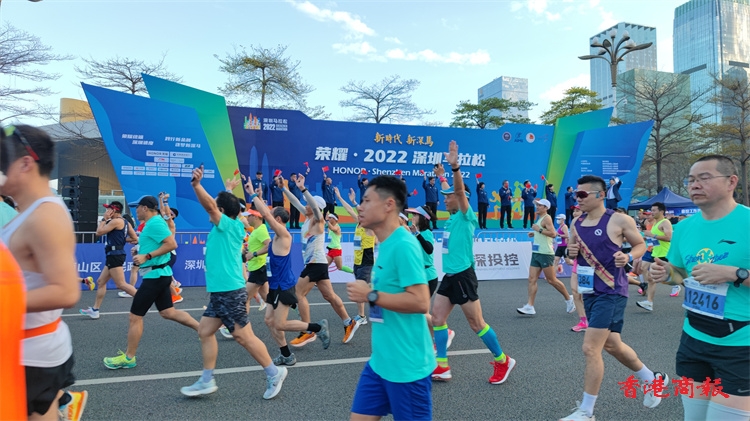 7點30分,在現場唱國歌后,隨着開跑槍聲的響起,2022深圳馬拉松正式開跑。(記者蔡易成 喬凱 實習生朱凱璐)