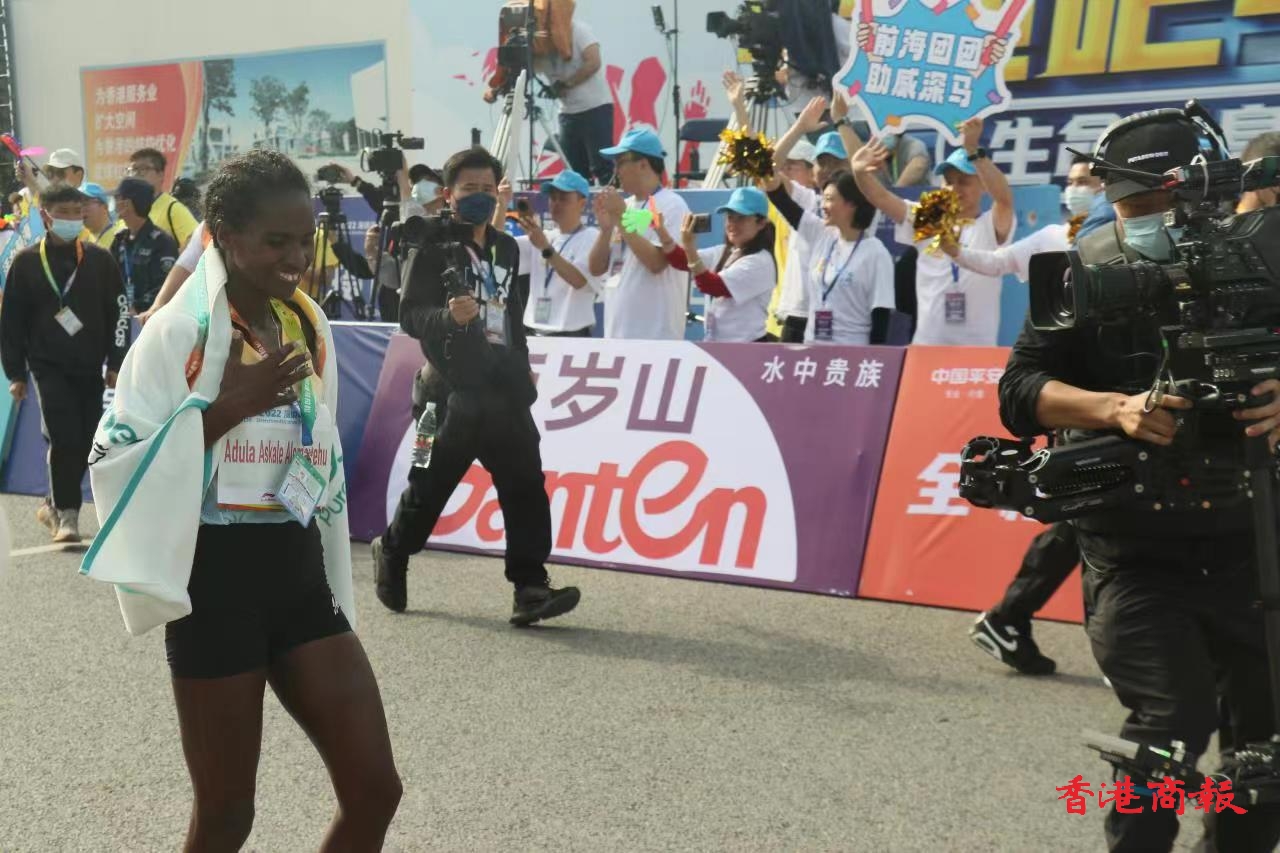 「2022深圳马拉松」全马女子組埃塞俄比亞選手ALEMAHEYU跑出2小時34分19秒的成績,奪得冠軍,中國選手楊花獲得第三名。(记者蔡易成 乔凯 实习生朱凯璐)
