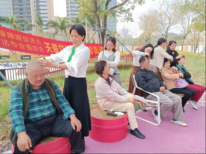 上午的活動中,促進會副會長、非藥物療法專業委員會主席、芳香療法職業技能鑑定高級考評員楊淞焱,人社部精油高級康復理療師溫植傑、黃淑芳、閻舒、廖曉玉、徐瓊珍、李佳敏等專家為遊園市民普及健康睡眠知識,並採用精油刮痧和按摩給現場的人士進行理療。