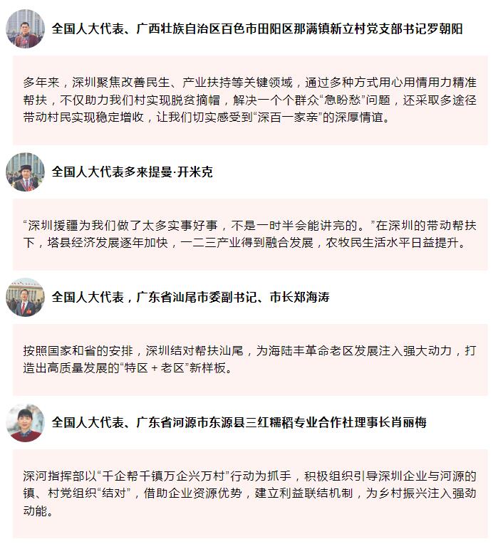 在2023全國兩會召開之際,來自新疆喀什、廣西百色,以及廣東河源、汕尾、汕頭等深圳對口幫扶省(區、市)部分全國人大代表接受深圳特區報記者採訪,點讚深圳在全面推進鄉村振興、促進區域協調發展和加快農業農村現代化中的擔當作為。
