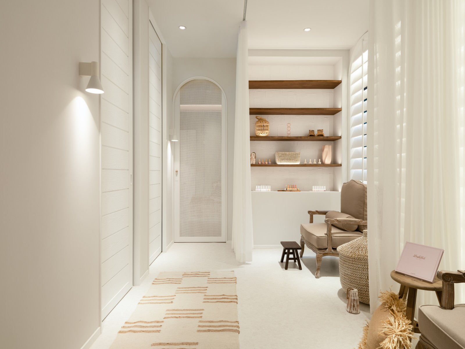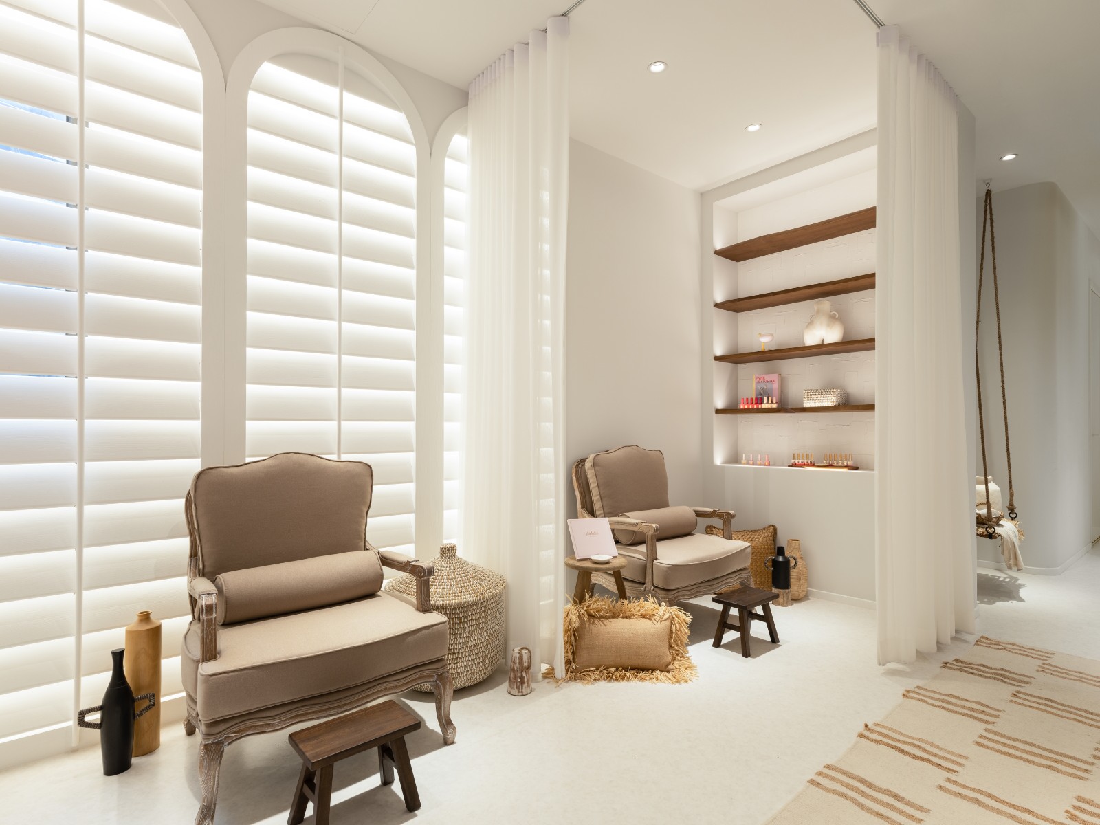 舖面有1000平方呎,木製的仿畫框入口,極簡主義的威尼斯油畫牆,配上藤編燈罩和藤製椅子裝飾,營造充滿藝術感的氛圍,並設置了4個寬敞的私人空間。「睫毛嫁接」前,美睫師為顧客進行眼部紓緩的清潔護理,之後使用3D嫁接技術,將兩根獨立睫毛上下包裹在一根天然睫毛上,令睫毛層次顯著。想擁有更豐盈的蓬鬆效果,可選用6D技術,將4至6根人造睫毛成扇形散開包裹在一根天然睫毛上,凸顯明亮晶瑩的雙眼。