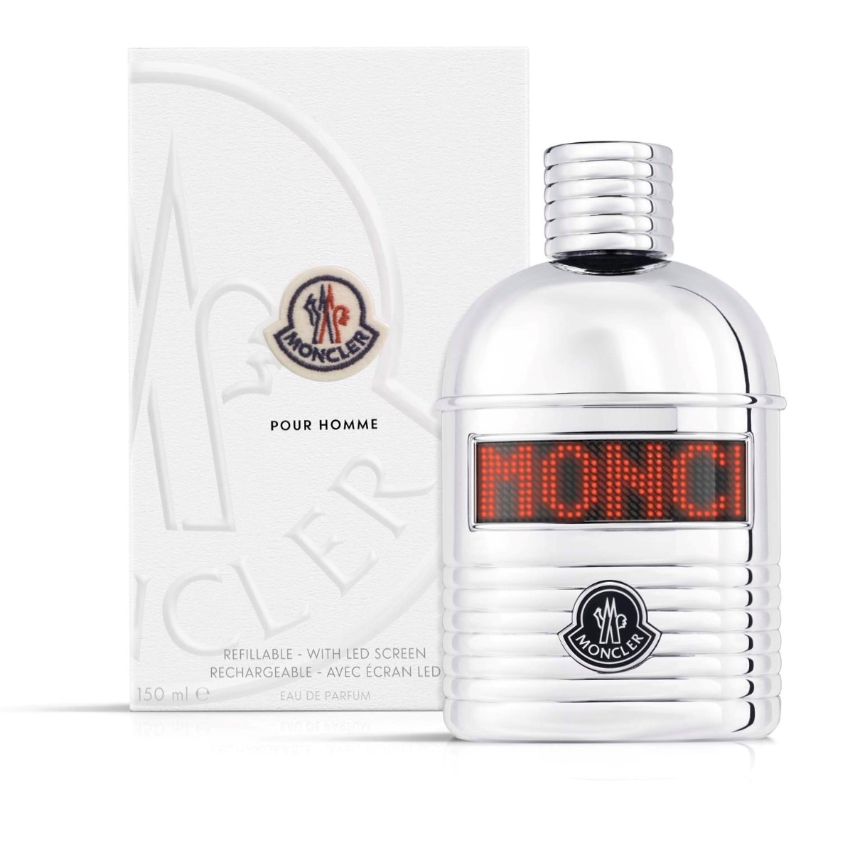 POUR HOMME將高山森林的自然美景通過獨特木質香調散發出來。MONCLER 獨有的調香提升香水的輕盈芬芳度,宛如置身於茂盛的高山樹林中。瓶身設有LED屏幕,透過藍牙連接智能手機的應用程式,可隨意自訂香水瓶上的屏幕信息,為爸爸帶來驚喜。