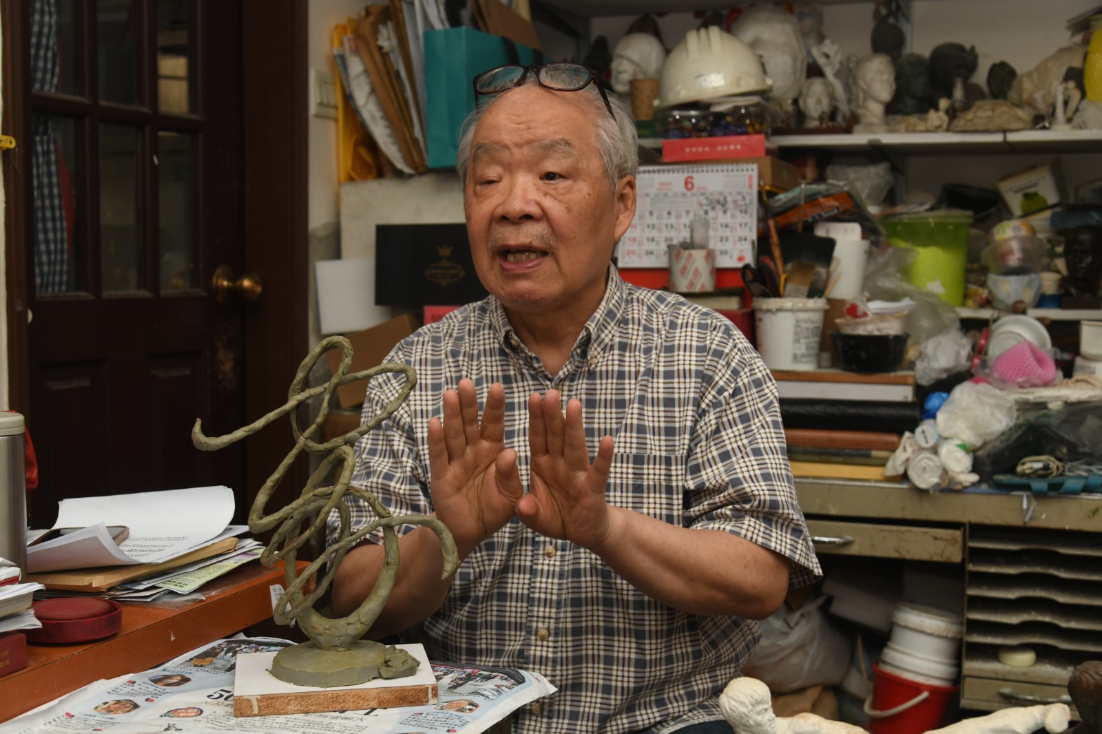 朱達誠精通人像雕塑,創作雕塑時會參考人物的側面及正面。