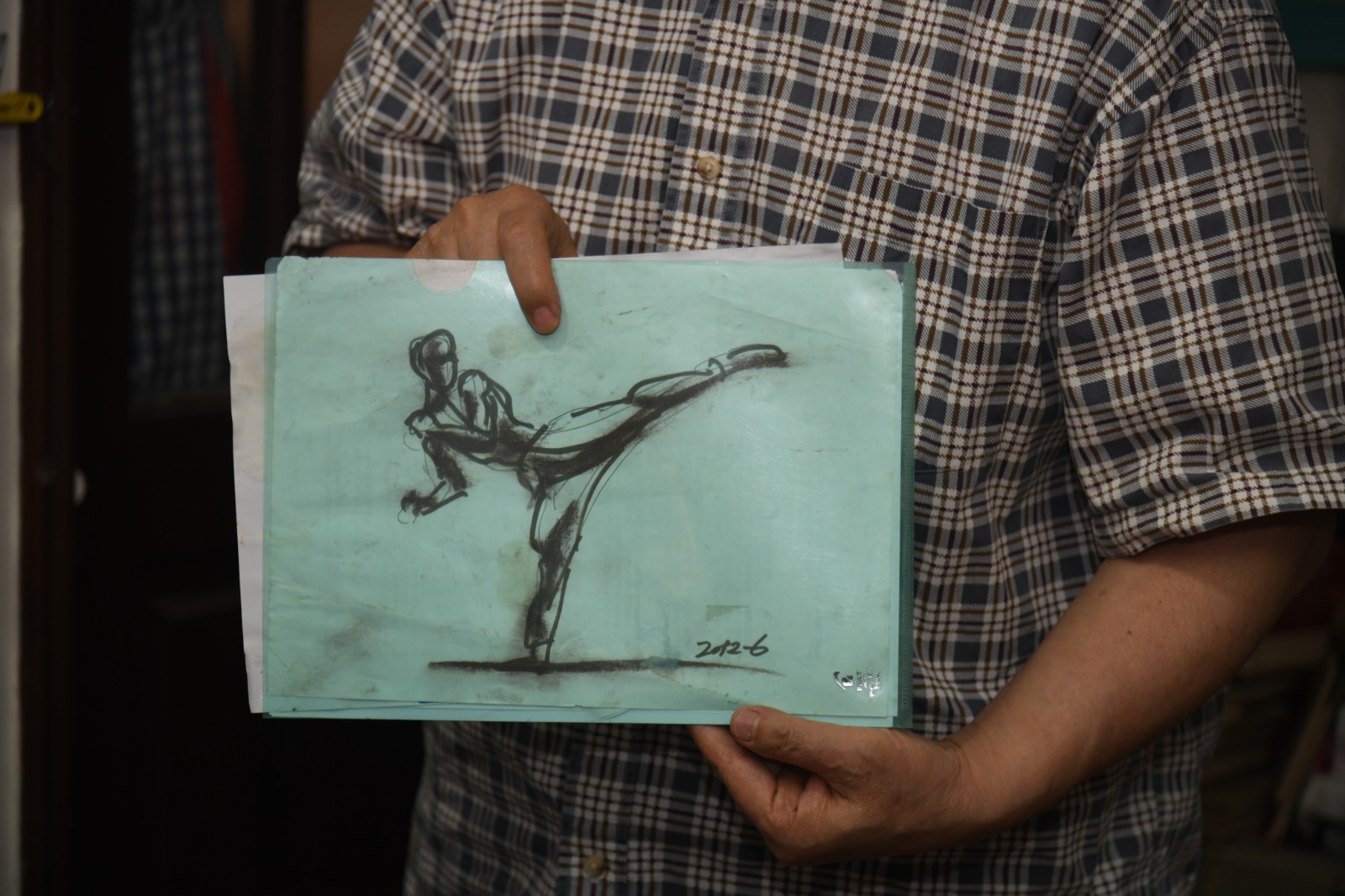 朱達誠展示李小龍全身像的草圖。