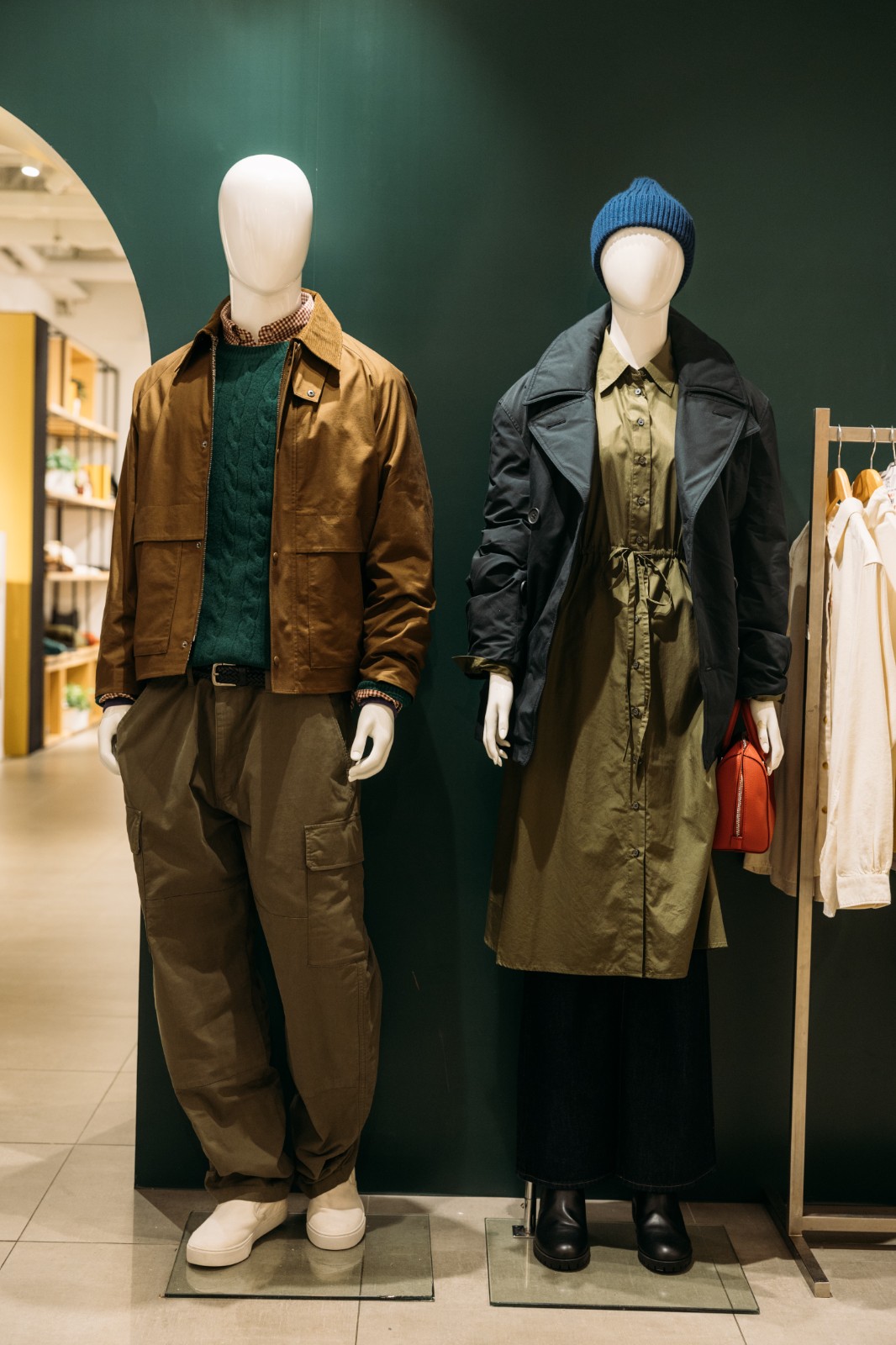 品牌的「現代層次美學」重點在於時尚單品、顏色與材質與機能性共三項。在持續的透膚流行趨勢下,輕薄的透膚單品是初秋轉季的衣櫥必備,可單穿內搭背心,或以今季大熱Bra Top打造若隱若現的感覺,有或是運用疊穿方式,外加T恤或背心。受Y2K元素回歸影響,秋冬季延續潮能工裝褲潮流,可搭配短版上衣穿出俐落感,或選擇具女性氣質的貼身服飾,帶出對比,如親膚針織衫、透膚上衣,搭配球鞋、涼鞋或尖頭高跟鞋;男士可利用簡約單品如T恤、恤衫、衛衣等作多層次搭配,配合寬鬆工裝褲,讓造型更顯玩味感。