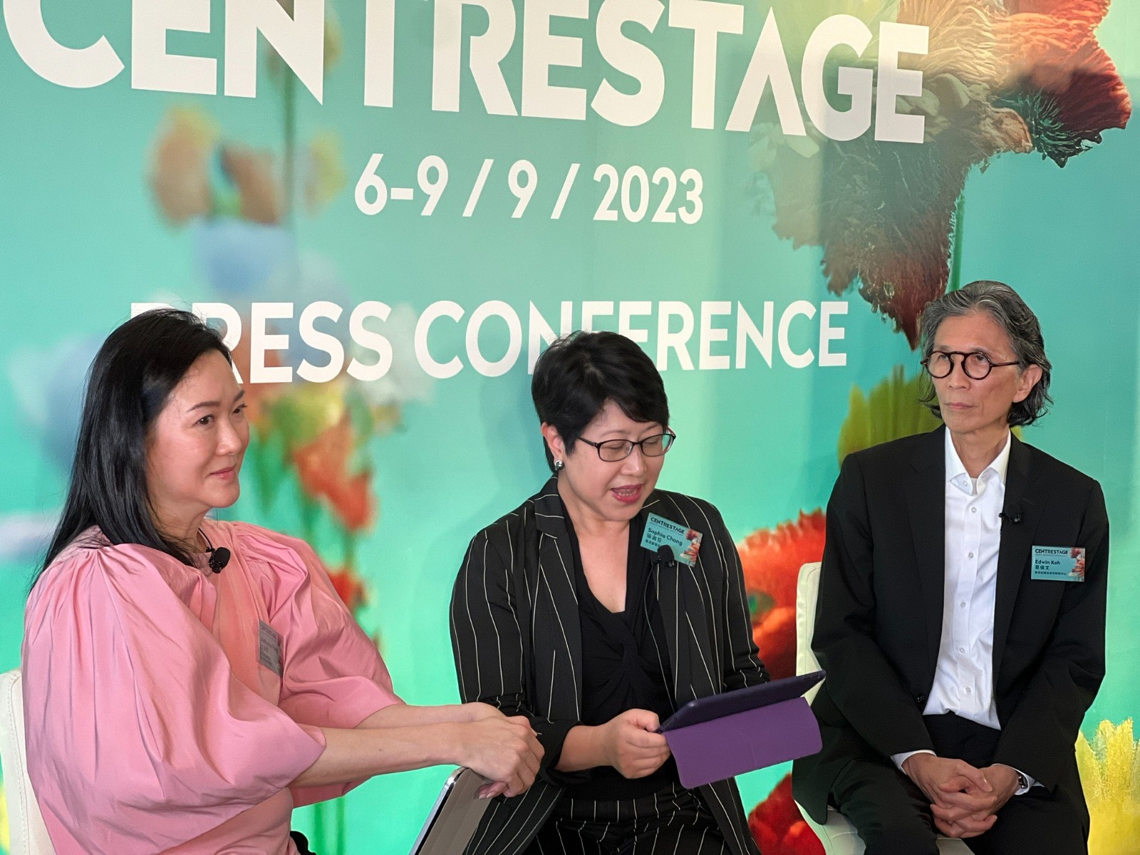 香港貿發局署理總裁張淑芬(中)、香港貿發局成衣業諮詢委員會主席方淑君(左)和香港紡織及成衣研發中心行政總裁葛儀文(右)於CENTRESTAGE新聞發布會分享展會亮點和業界趨勢。