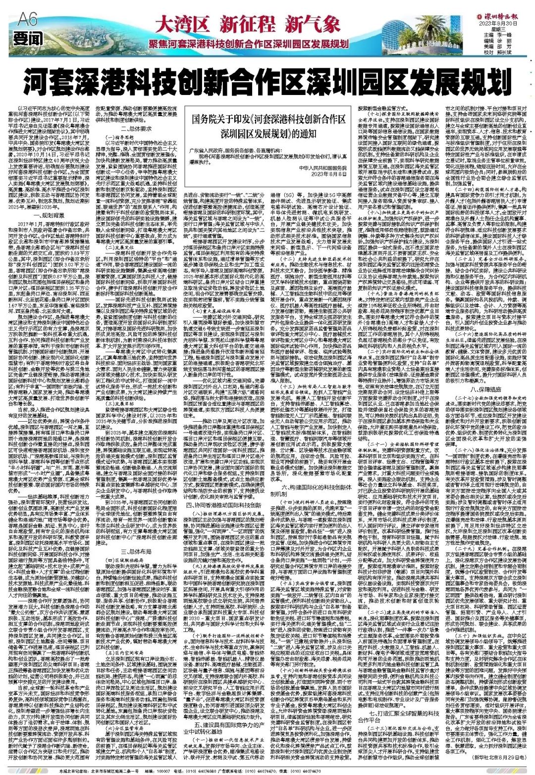 國務院印發《河套深港科技創新合作區深圳園區發展規劃》