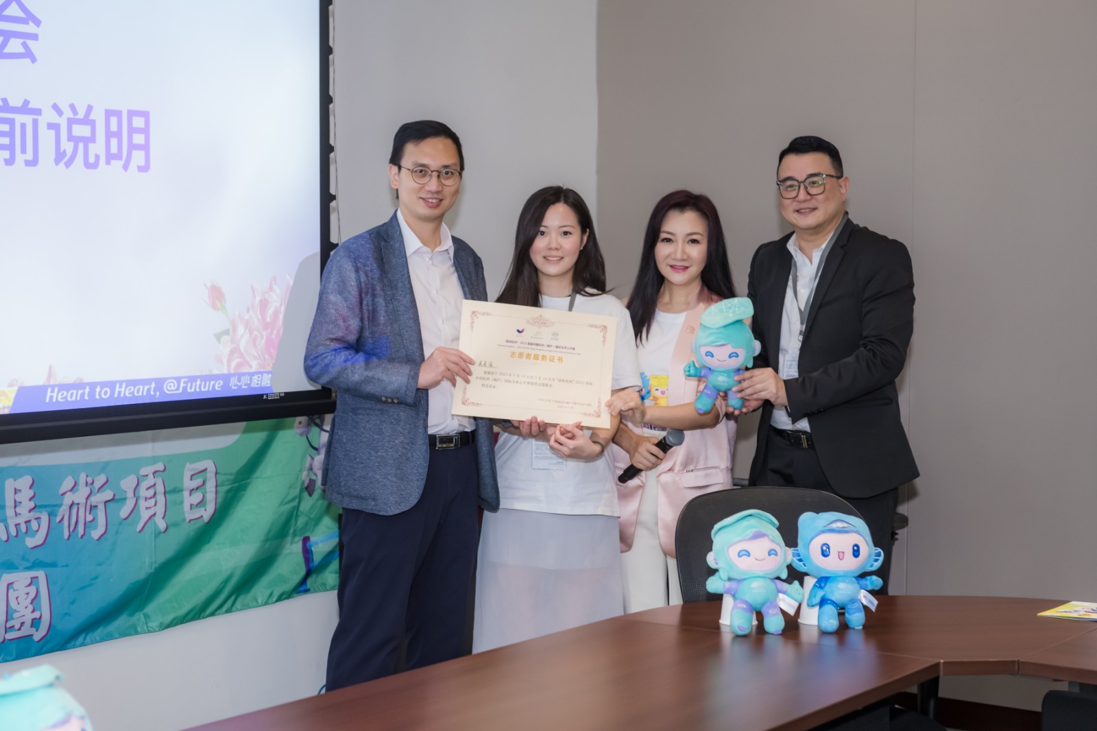 活動上,主辦方向5月曾前往浙江桐廬為國際馬術公開賽提供志願服務之志願者頒發証書,以表揚他們在早前進行之崗位實習培訓上盡忠職守,發揮青年特色,用實際行動詮釋當代青年的責任與擔當。