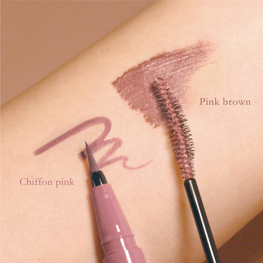 絲滑特濃防水眼線(霧紗粉,),HK$106/支。完美纖長鬈翹睫毛膏(粉棕,),HK$112/支。