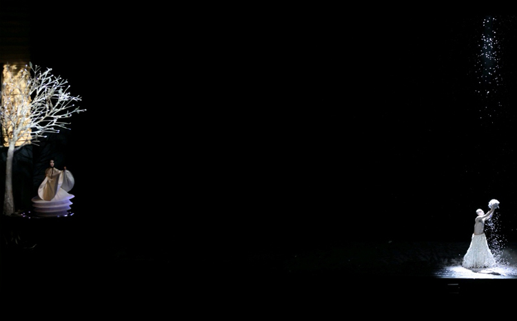 滿眼的雪花和孔雀美麗的羽毛交織,簇簇訴說着這場森林盛宴的瑰麗和夢幻,也讓1300多位觀眾感受了一場直擊心靈的美!