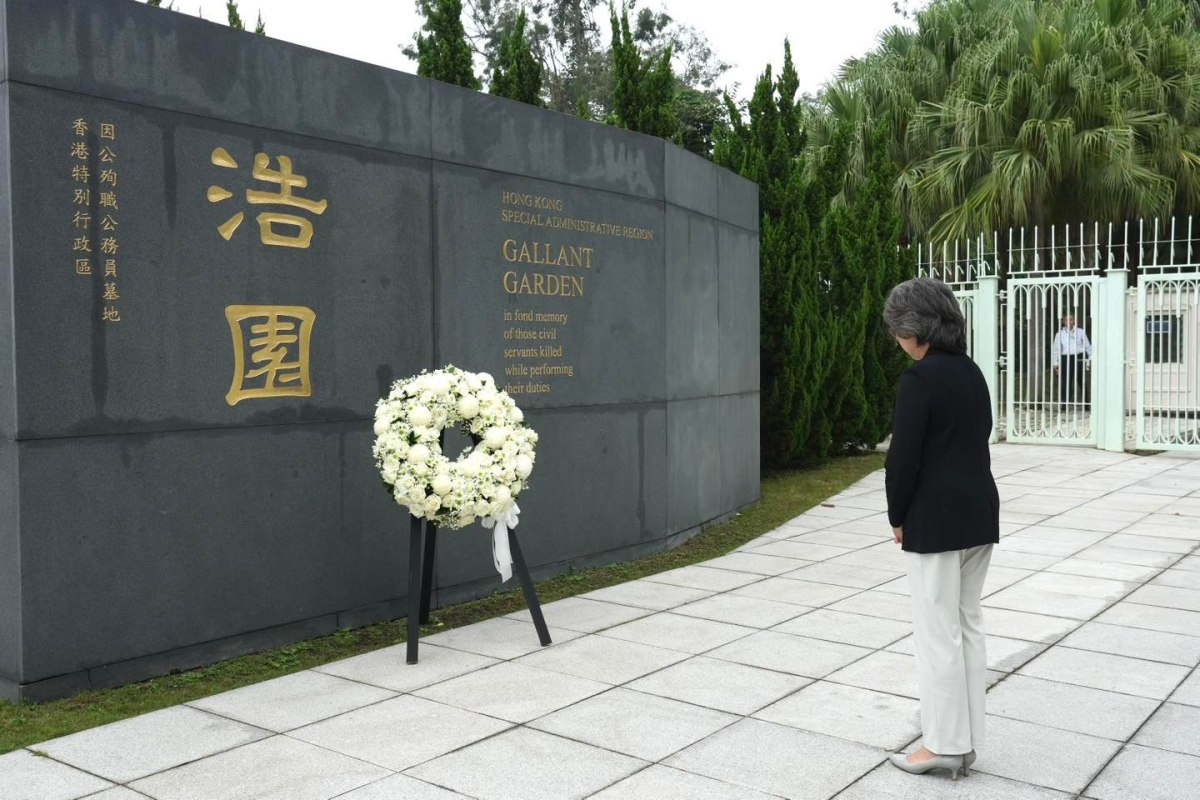 今日(23日)是重陽節,公務員事務局局長楊何蓓茵代表特區政府到浩園悼念因公殉職的公務員,並向逝者獻上鮮花,致以最祟高的敬意和哀思。