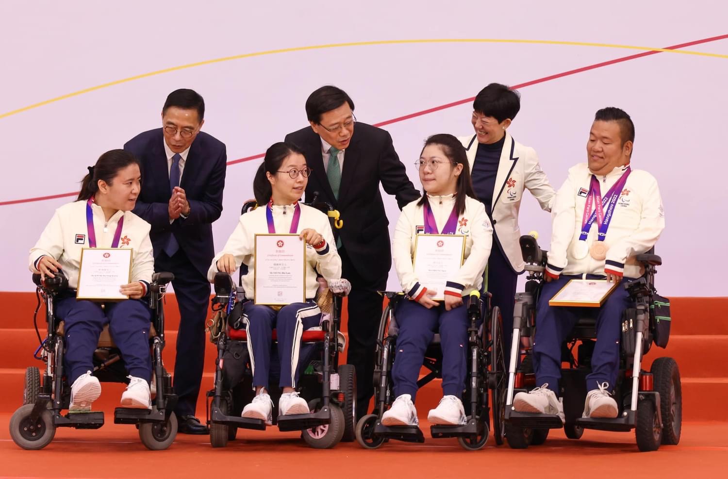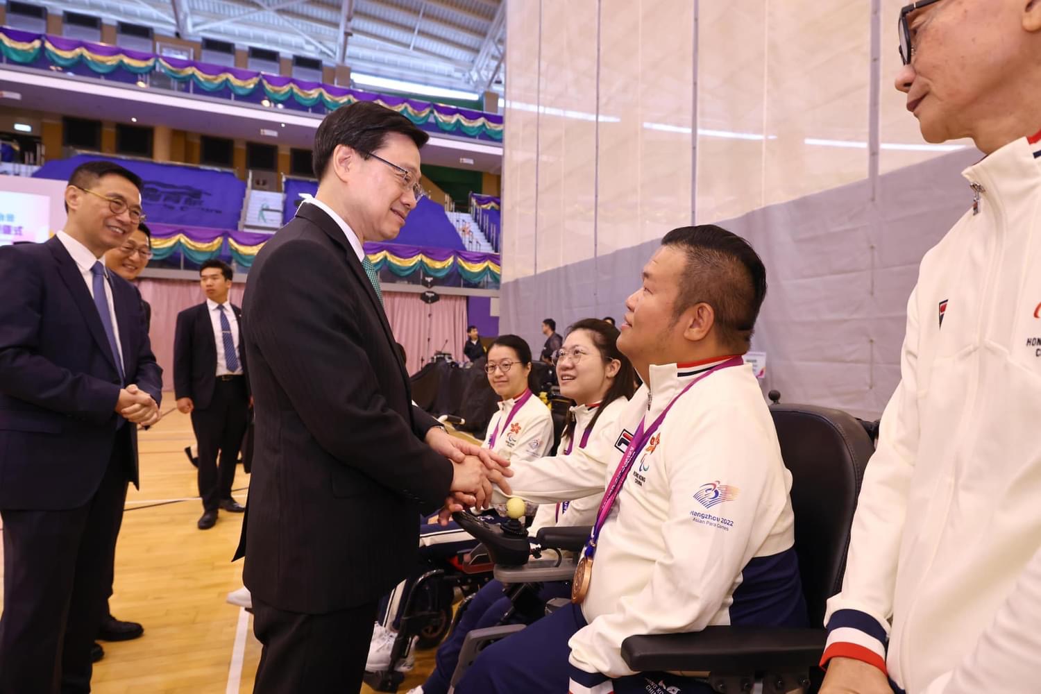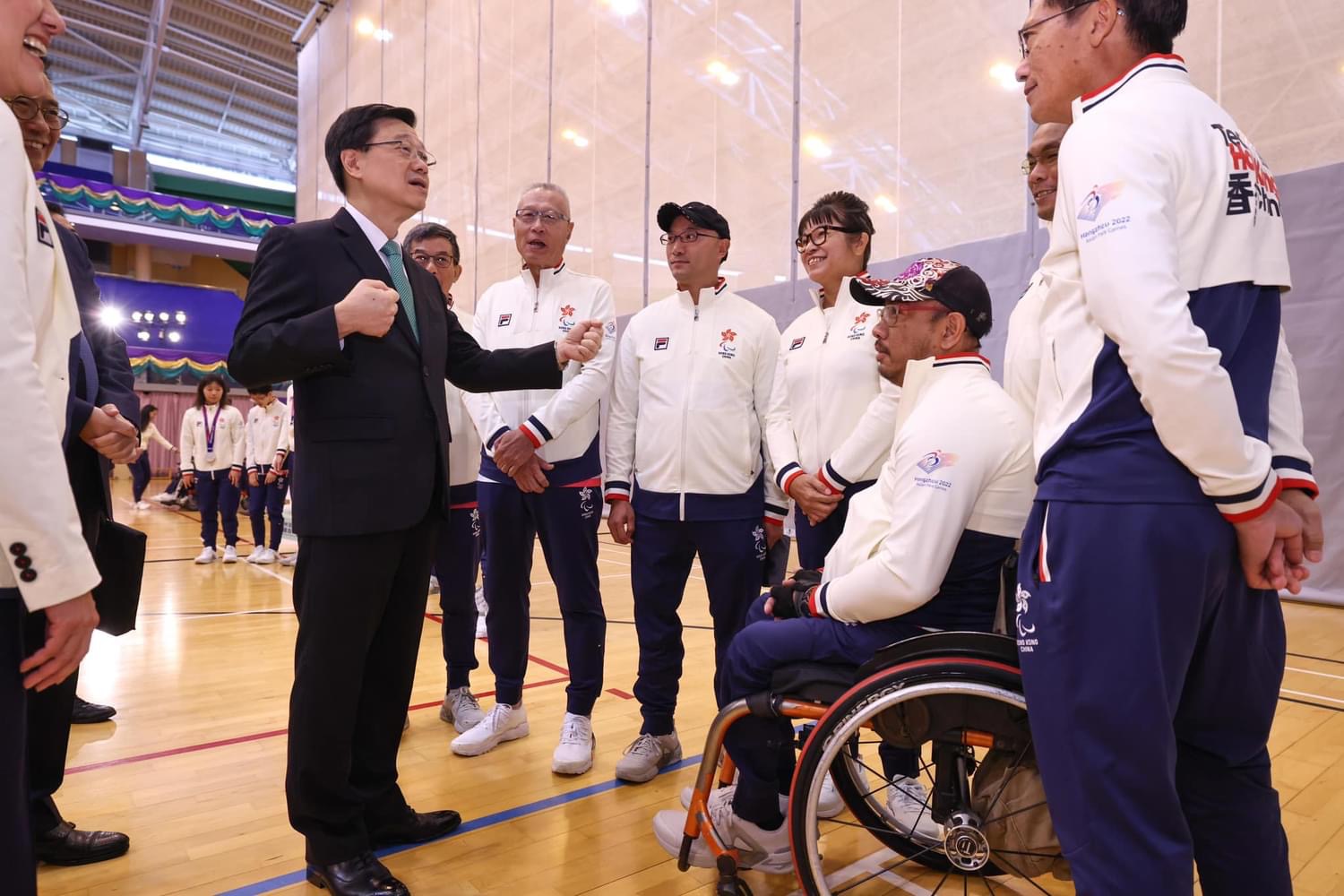 李家超又說,香港隊在亞殘運會表現出色,不僅是運動員和團隊的努力成果,亦反映政府積極投放資源推動體育發展,並為殘疾人士體育發展增撥資源,方向正確,成效有目共睹。