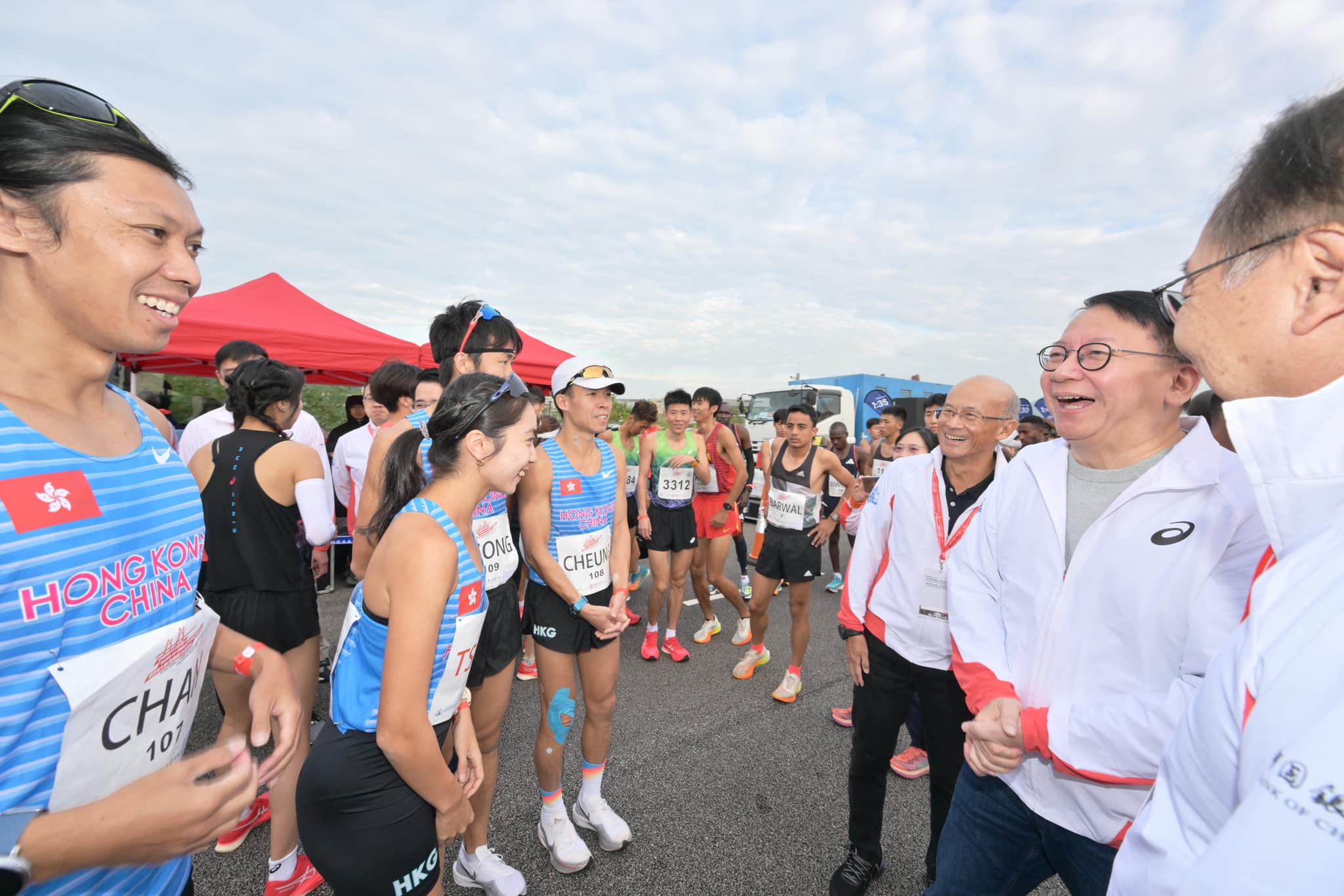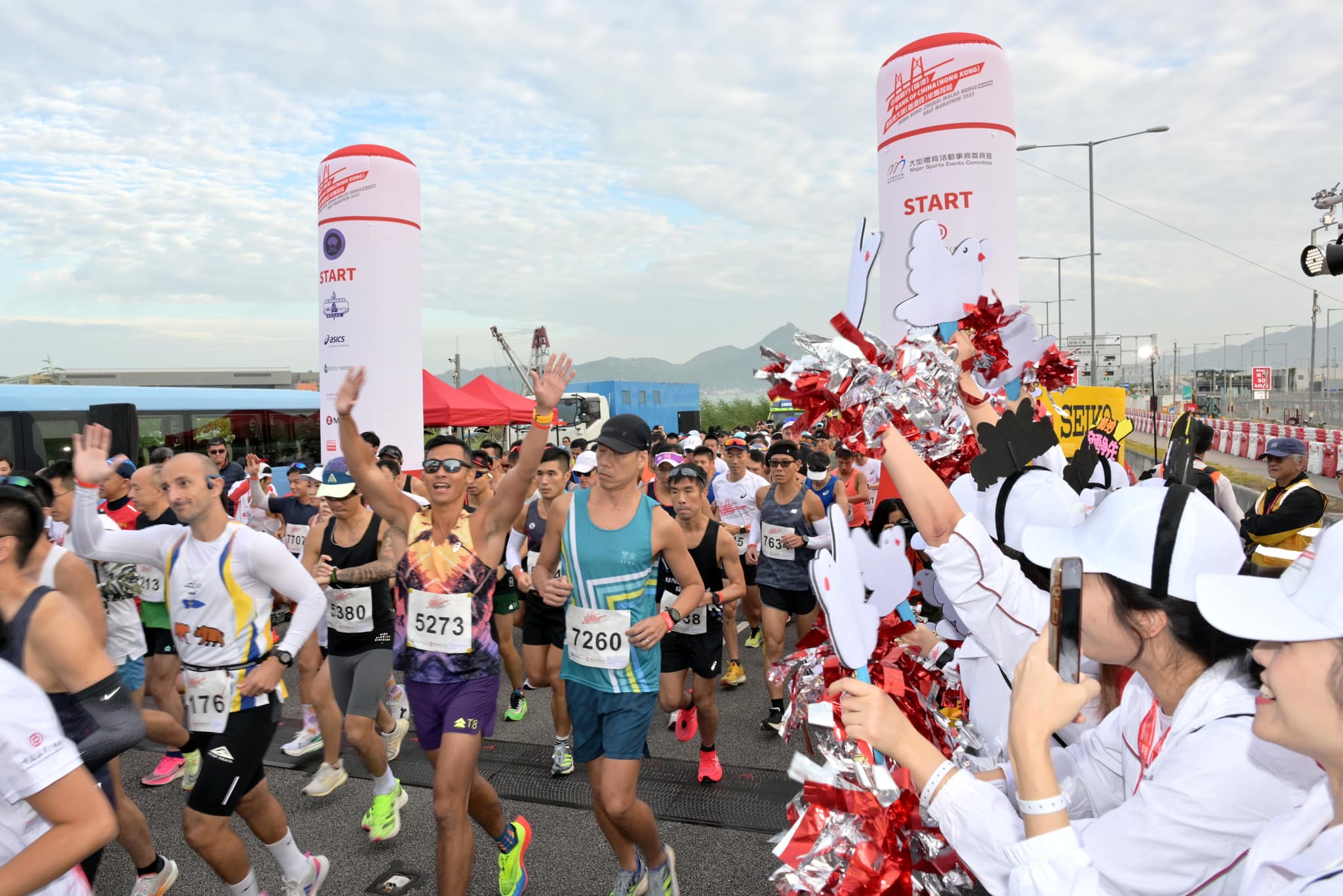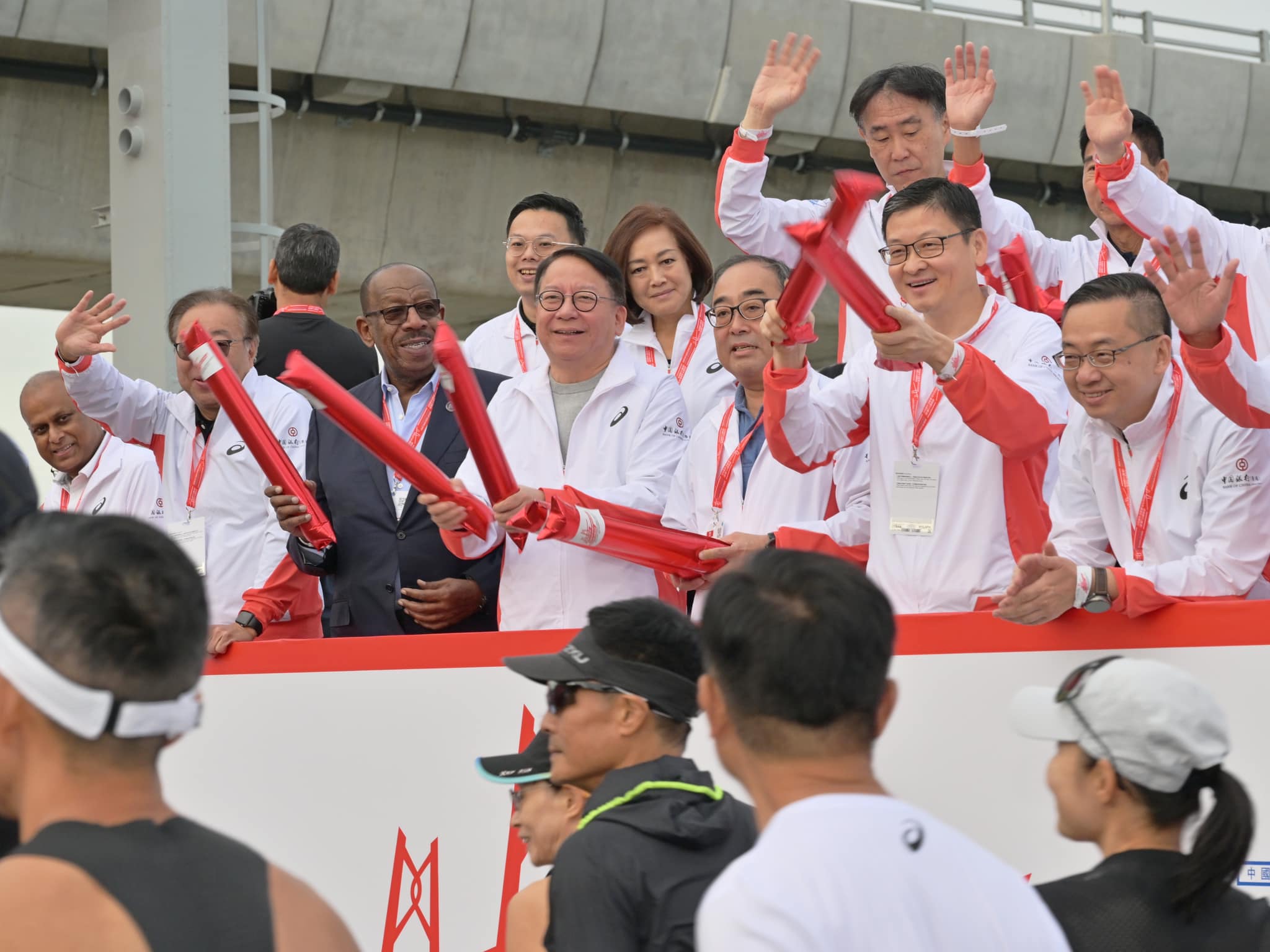 陳國基續指,隨着他和其他主禮嘉賓鳴槍聲起,第一批參賽健兒迅即開跑,人頭湧湧,儘管天氣近日轉涼,但絲毫不減現場的熾熱氣氛!他們在大橋上作賽之餘,既可飽覽香港美麗景色,亦可親身體會國家這項偉大建設,定必留下深刻難忘的半馬經驗。