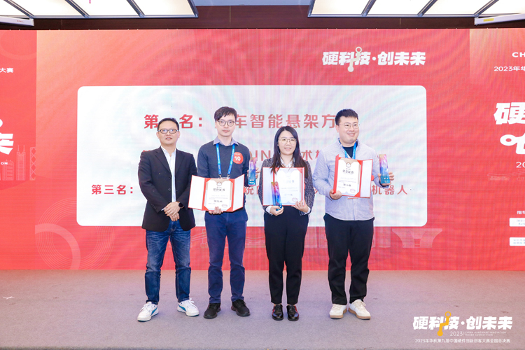 經過激烈的比賽以及嚴謹的評選,在眾多專業評委、投資人、企業家、產業專家、創業項目、專業媒體等見證下,最終「汽車智能懸架方案」;「PINPOINT 手術機械人」;「基於視覺與語音系統的雙臂人形協作工業機械人」三個項目分別成功斬獲2023年華秋第九屆中國硬件創新創客大賽全國總決賽冠/亞/季軍!