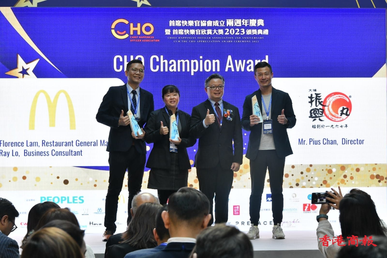 首席快樂官協會今日(22日)假中環街市舉行首席快樂官協會成立兩周年慶典暨首席快樂官欣賞大獎2023頒獎典禮,頒發十大最快樂企業大獎,以及其他一系列企業文化大獎。經過為期兩個月的專業評審過程,嘉許共32間本港優秀企業,成為快樂企業文化的典範。出席今日頒獎典禮的嘉賓包括前食物及衛生局局長、港大醫學院教授陳肇始,立法會議員尚海龍,前教育局局長、首席快樂官協會榮譽主席吳克儉,以及首席快樂官協會創始人兼執行主席孫美妮。
