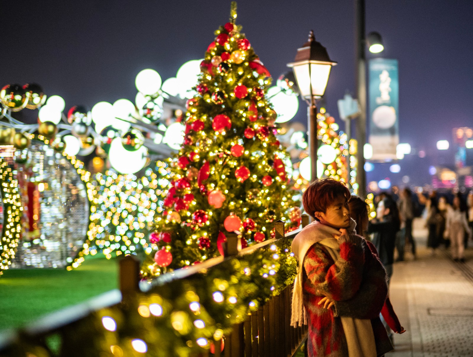 本港將迎來疫後首個聖誕節,旅遊發展局由昨日(24日)起至明年1月1日,在西九文化區藝術公園海濱草坪舉行「香港繽紛冬日巡禮」。其中最受矚目的一棵高逾20米的巨型聖誕樹昨晚亮燈,連同一起點亮的「海濱聖誕小鎮」,揭開了冬日巡禮的序幕,為城市增添喜慶氛圍。