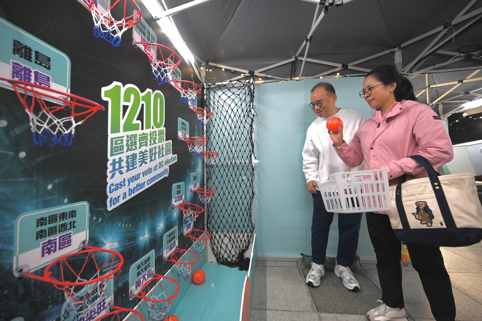政制及內地事務局局長曾國衞早前分別到堅尼地城卑路乍灣海濱長廊及灣仔海濱的「區選夜繽紛」,與市民互動及玩遊戲;民政事務局局長麥美娟和多名副局長先後到訪設於紅磡市政大廈體育館、觀塘社區中心、青衣西南體育館及鯉魚門體育館等的「區選進社區」流動遊戲攤位;財經事務及庫務局局長許正宇則到訪奧海城二期的親子工作坊及展覽。一眾官員在活動現場派發宣傳單張和紀念品,宣揚1210區選齊投票的訊息,呼籲選民於投票日選出心儀的候選人,共建美好社區。