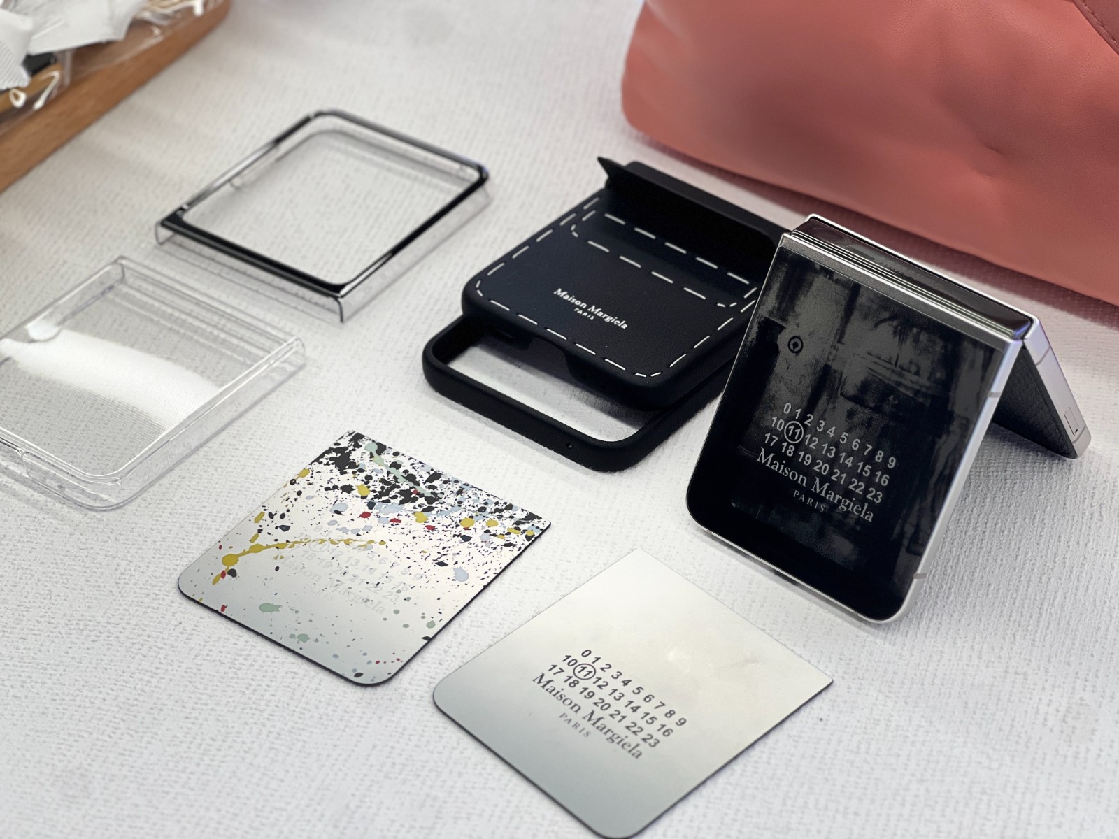 除了外觀上的巧妙設計,手機內部的智能主題保護殼亦呼應品牌對獨特性及創意的追求。手機附上噴彩設計和銀色金屬牌兩款智能主題卡,將Maison Margiela數字編號設計透過Flex Window呈現。