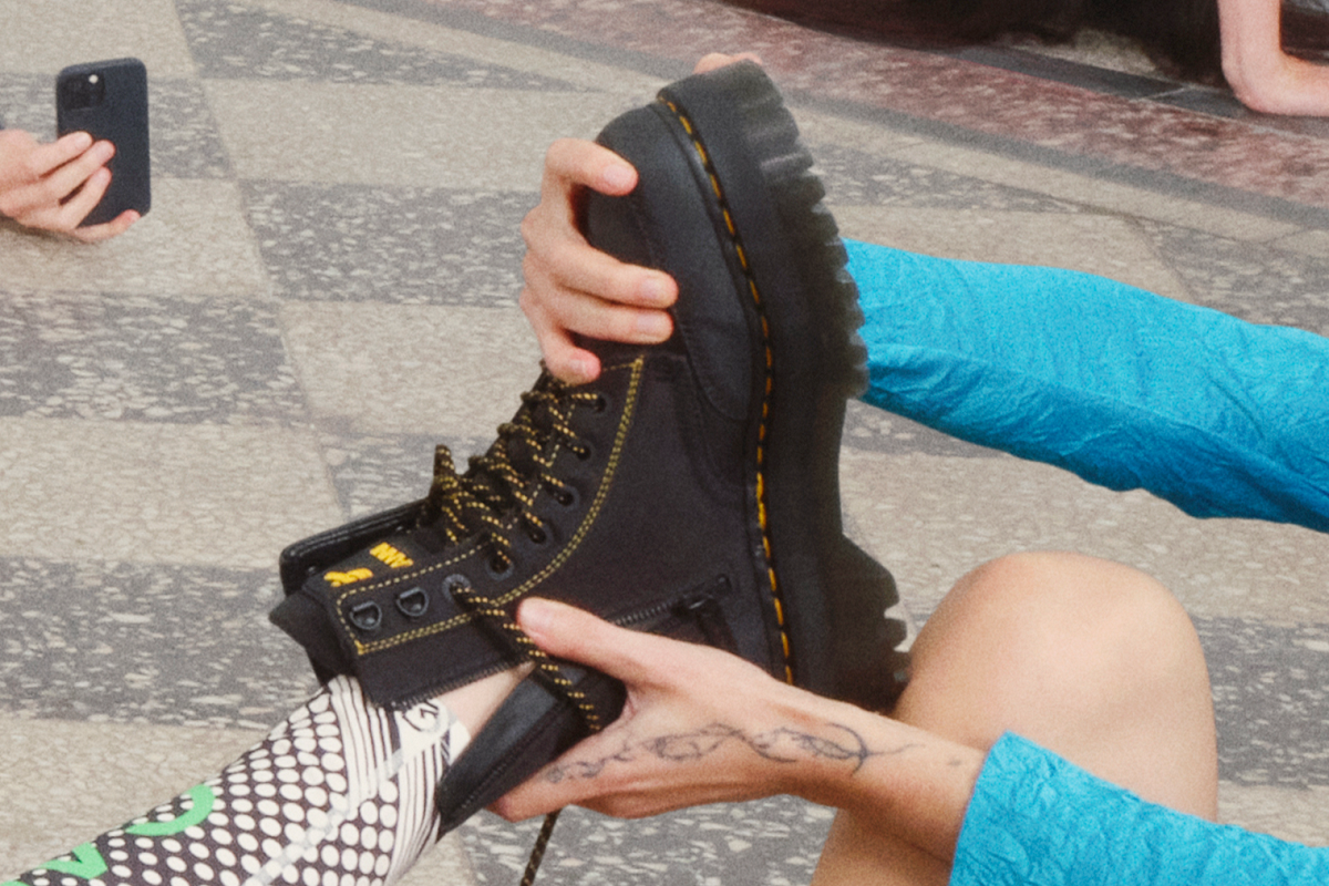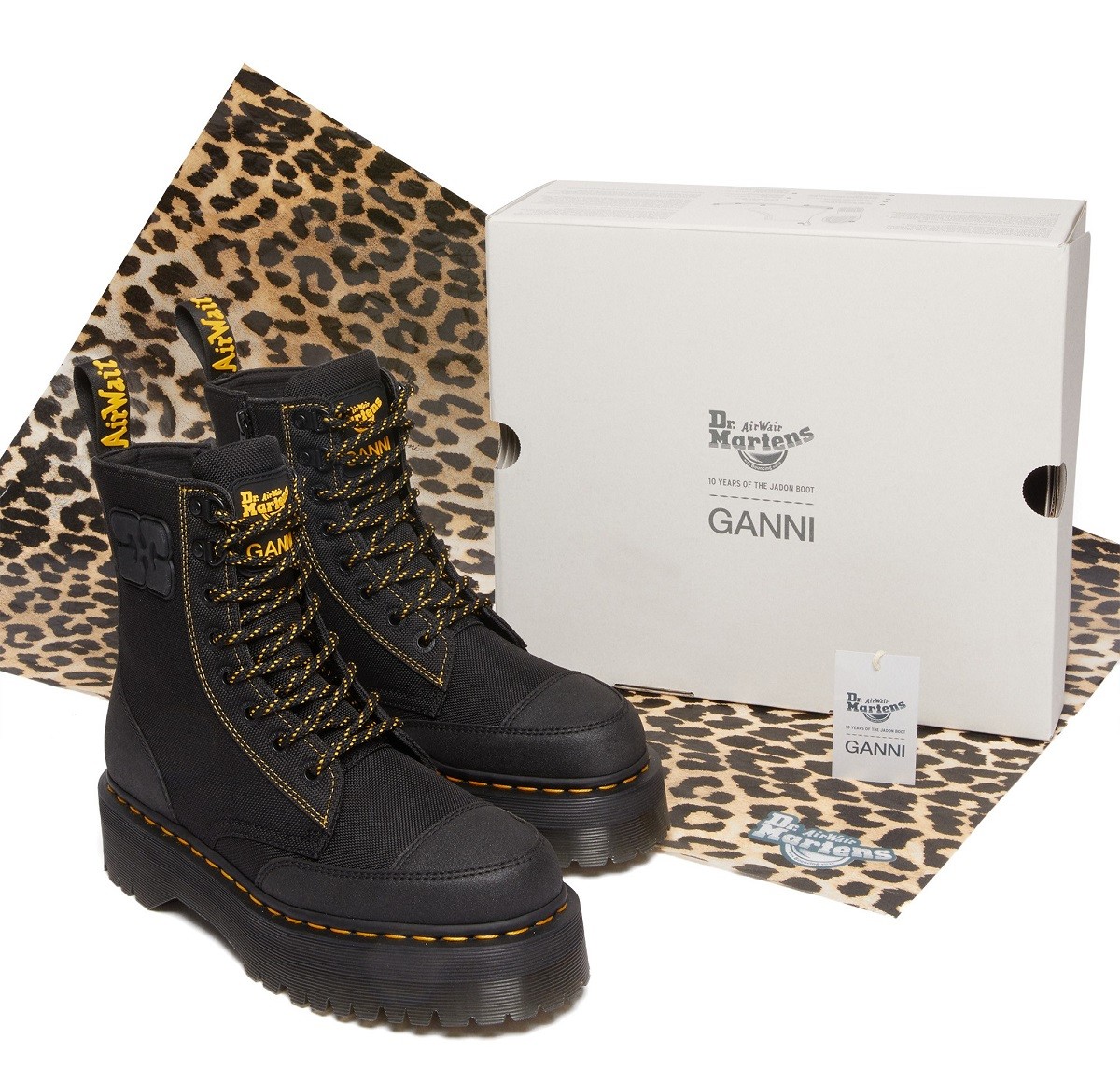 Dr. Martens為慶祝Jadon靴誕生10周年,近日與GANNI首度合作聯乘,推出融合叛 逆與時尚風格的Jadon靴。Ditte Reffstrup表示:「今次與Dr. Martens合作讓我回 到90年代的青少年時期,那是我最喜歡的時代。他們的靴子超越世代,成為次 文化。今次合作推出的Jadon靴,以向音樂界致敬為主題,因為音樂一直是我的 靈感來源。」