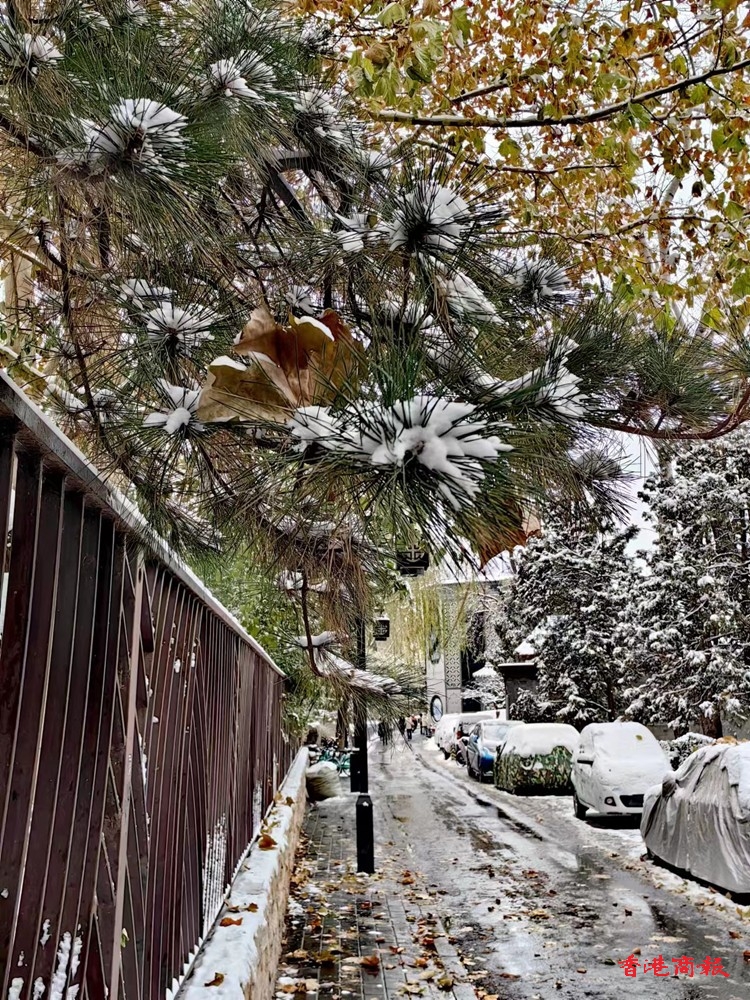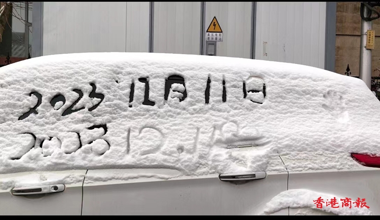 還有人在汽車頂部厚厚的積雪上記錄下初雪時間