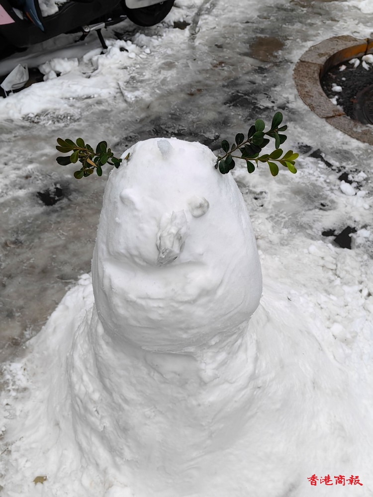 路邊丑萌丑萌的小雪人,兩隻朝天辮很可愛