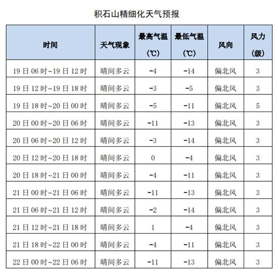 蘭州中心氣象台預計,未來10天,積石山無降水過程,冷空氣活動較弱,天氣以晴或多雲為主,氣溫緩慢回升,最低氣溫零下10至零下14℃,最高氣溫在1~5℃。