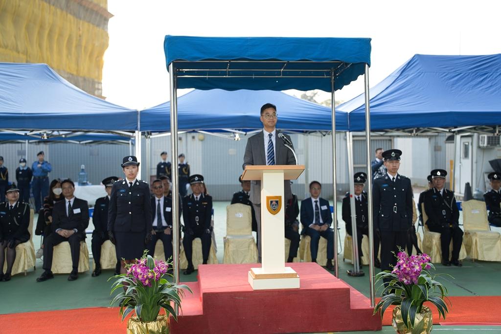 民眾安全服務隊(民安隊)少年團今日(6日)於民安隊總部舉行第140屆新團員結業會操,並邀得保安局副秘書長任向華擔任檢閱官。