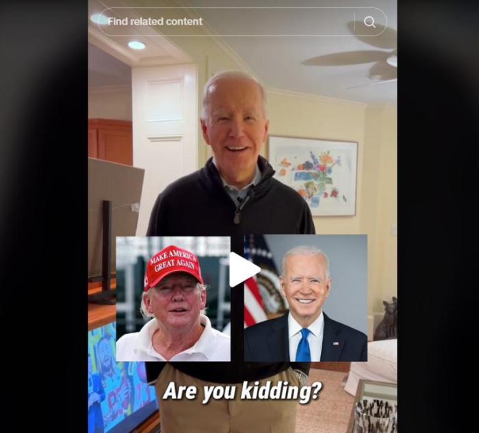 該團隊當天在TikTok上發布了第一段視頻。拜登在這段大約30秒鐘的視頻中以年輕人偏愛的短平快方式,回答了有關誰會贏得「超級碗」冠軍賽等一系列問題。